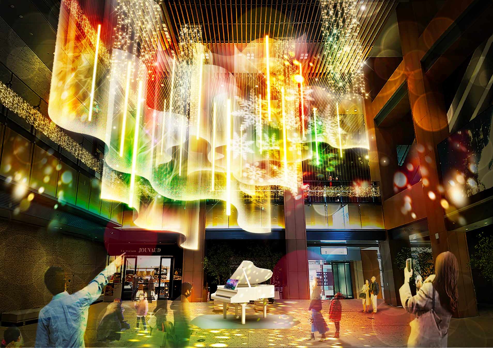 音楽で世界が色づき輝きだす、イマーシブなクリスマス。あなたの演奏を AI システムが可視化する!?体験型オーロラ空間 KITTE名古屋が贈る“ Music of Aurolights ”開催