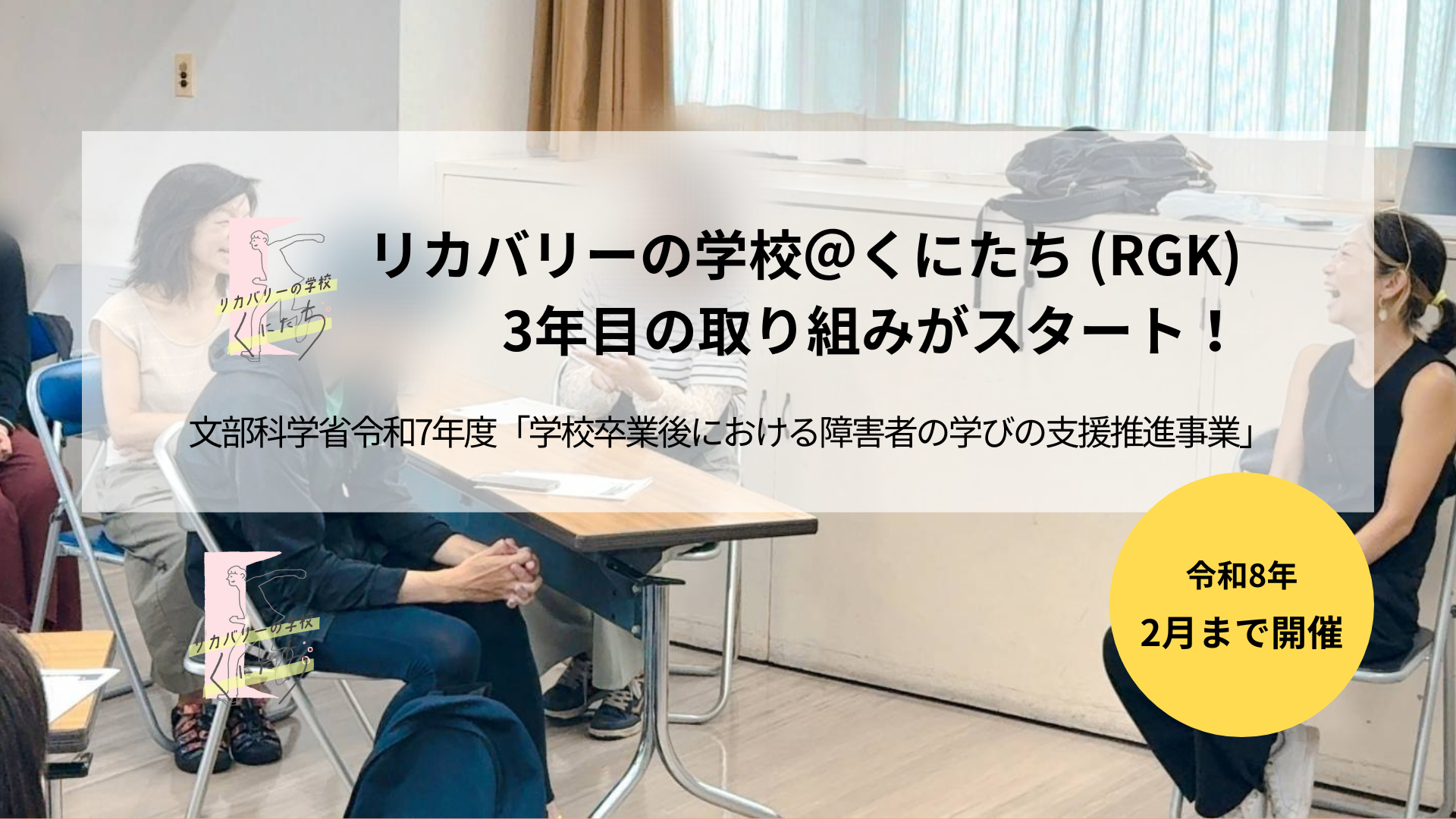 一般社団法人眞山舎 (代表理事:土屋 一登、以下「眞山舎」と表記。) は、文部科学省 (総合教育政策局 男女共同参画共生社会学習・安全課 障害者学習支援推進室) と、令和7年5月23日に、令和7年度「学校卒業後における障害者の学びの支援推進事業 (他分野連携による新たな障害者の生涯学習のモデル・ネットワーク構築) 」の委託契約を締結しました。 国立市公民館と連携して実施している本事業は、東京都国立市において多様な背景をもつ人々による「キョウドウを生きる暮らし」を実現するために、「リカバリーの学校@くにたち」 (以下「RGK」と表記。) という国立市独自の共生の学び場づくりを目指し、3年目を迎えます。