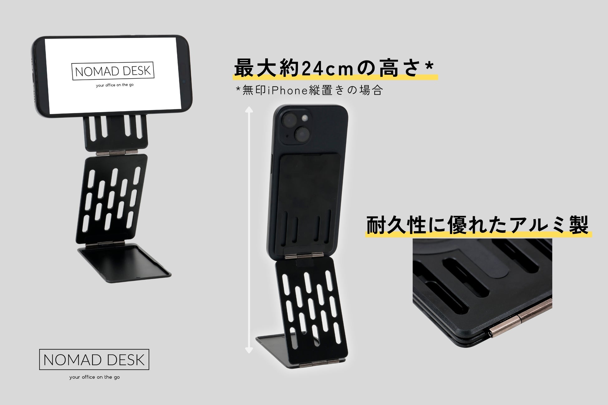 モバイルアクセサリーブランド『NOMAD DESK』を運営するノマドデスク(東京都中央区)は、多機能アルミ製3つ折りマルチスタンド「NOMAD STAND GEAR FLAT」を2025年11月23日より販売開始しました。