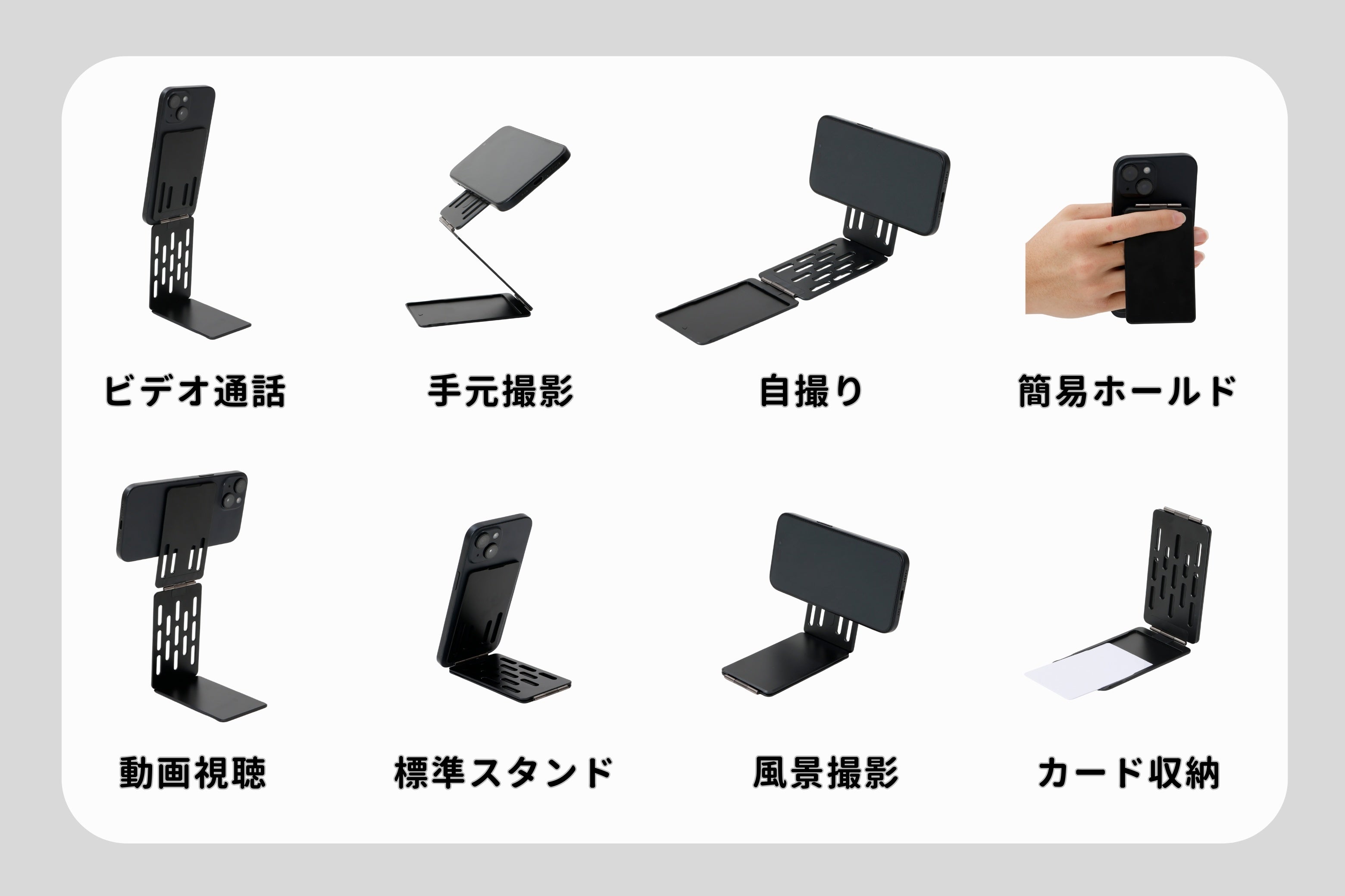 8WAYをカードに凝縮。手のひらサイズから多用途を実現する新発想のMagSafe対応3つ折りスタンドを発売
