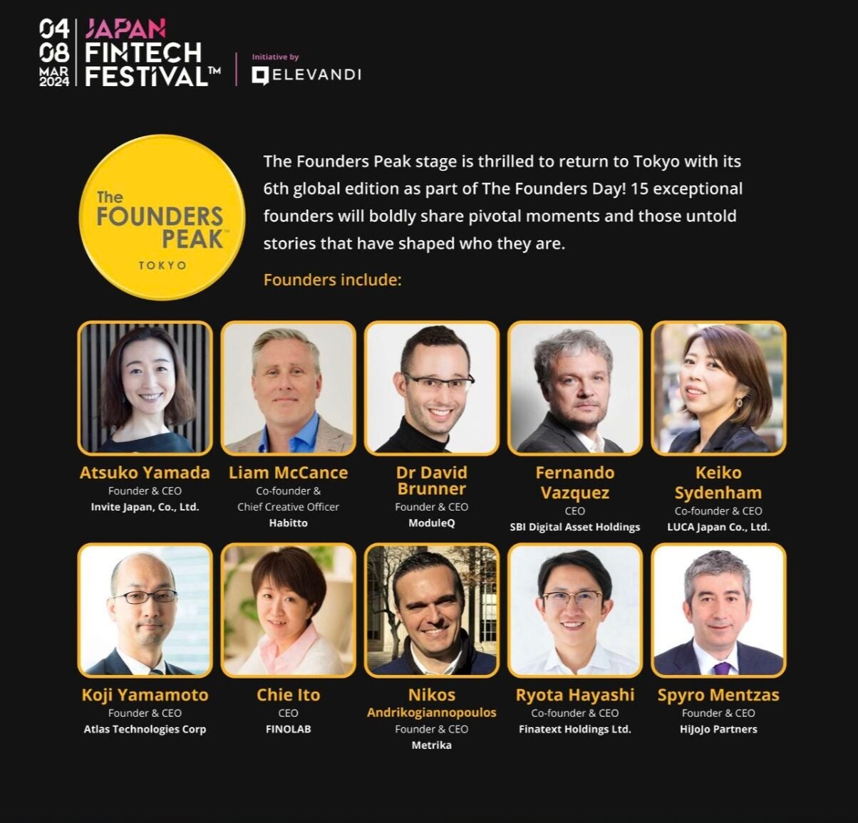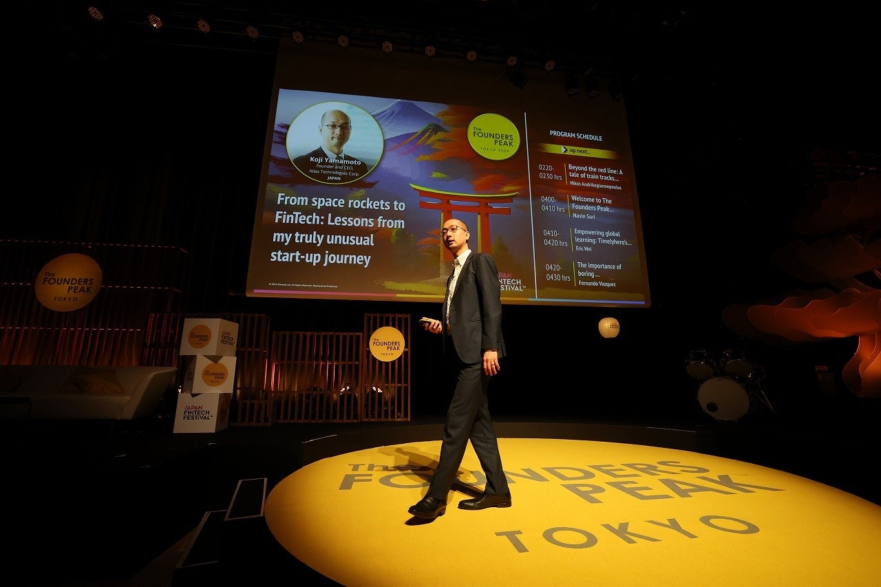 Atlas Technologies株式会社創業者兼代表取締役社長の山本は、JFFより招待を受け、2024年3月6日に行われたイベント「The FOUNDERS PEAK」のスピーカーとして登壇。「From Space Rockets to FinTech: Lessons from my truly unusual start-up journey」(「宇宙ロケットからフィンテックまで:私のスタートアップの旅からの教訓」)」と題した創業者としての経験を語りました。Atlas Technologies株式会社を創業するまでに学んだこと、そして創業後の事業成長の過程で直面した困難について、これまで語られなかった胸の内を明かし、観客の心を惹きつけました。