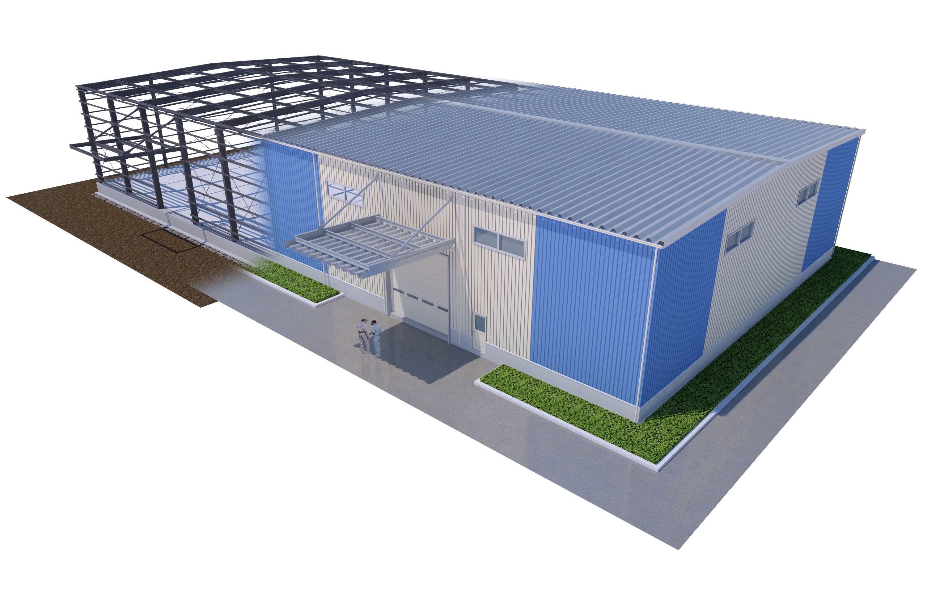 柱と梁の接合部分は、溶接ではなくボルトによる接合とするため、スピーディーかつ低コストでの製作が実現できます。基準モジュールを設定することで、屋根・外装の納まりの標準化が容易となり、品質の安定と同時に残材の発生量が低減できるなどの環境的なメリットがあります。
