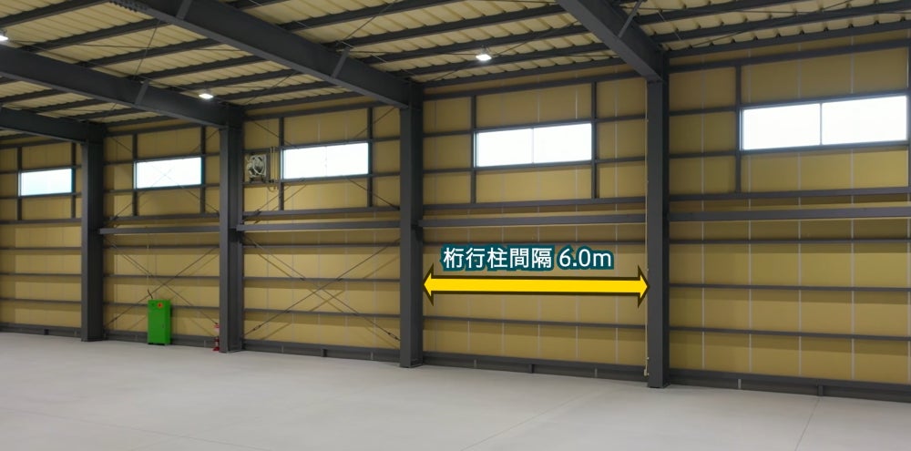 「TiO」は柱ピッチの基準モジュールを6mに設定することで、鉄骨システムの柱・梁を最適サイズで揃えることができ、屋根・外装の下地鉄骨も軽量な材料を使用し6mの長さで大量生産が可能です。