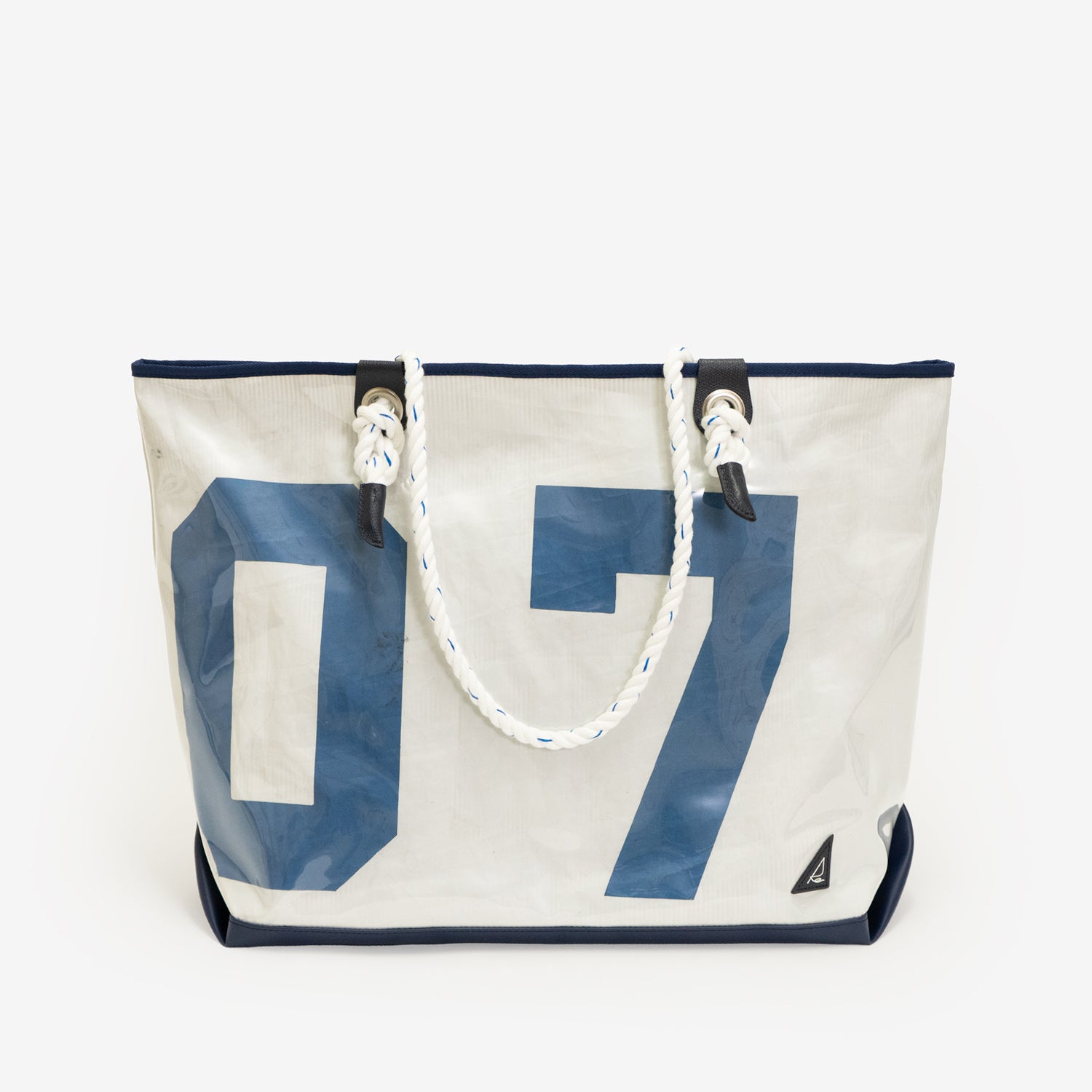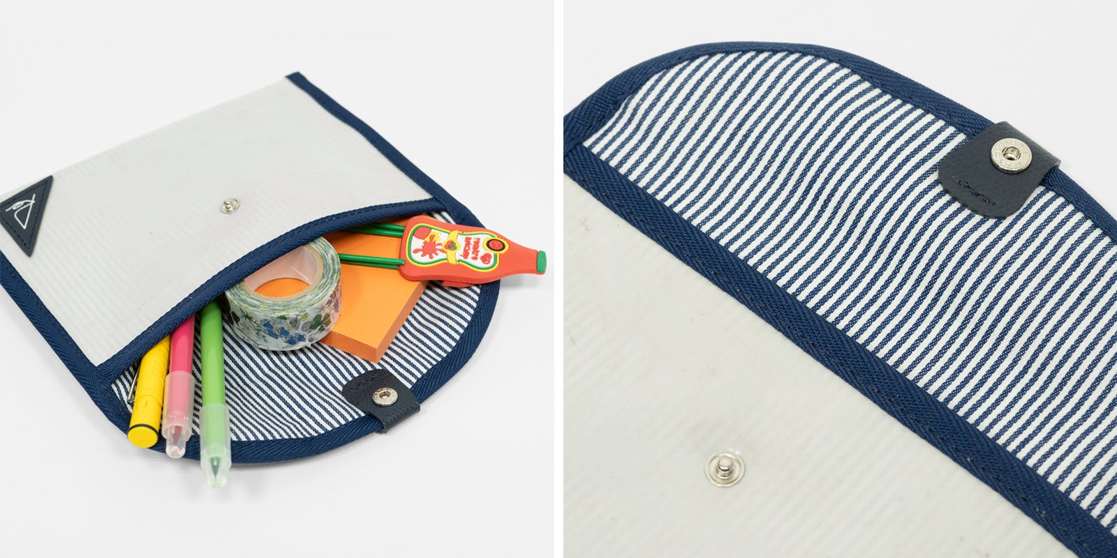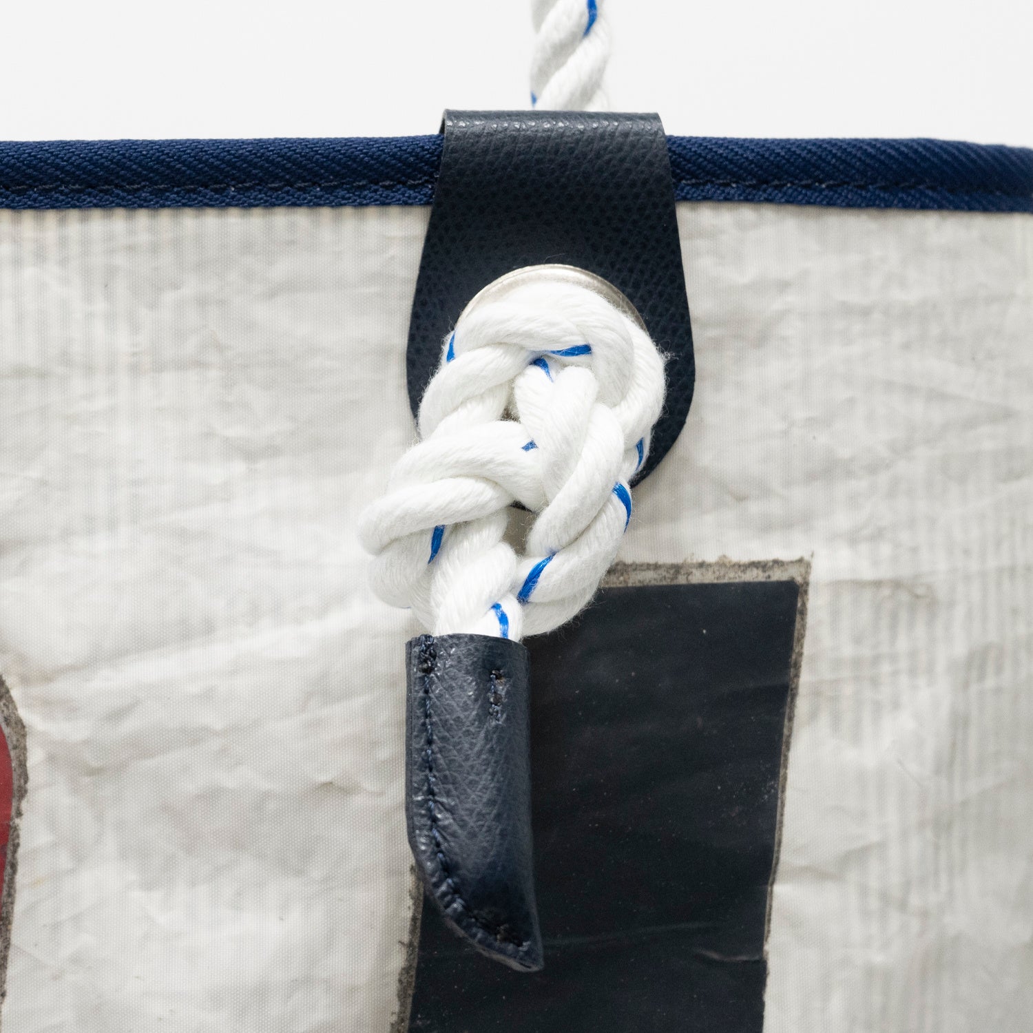 横浜・八景島マリーナに所属する大学ヨット部が練習や競技などで愛用し、役目を終えたヨットの帆(セイル)を本体素材にアップサイクルしました。廃棄されるはずだった生地を洗浄後、再利用できる部分を選び、国内で丁寧に縫製しています。