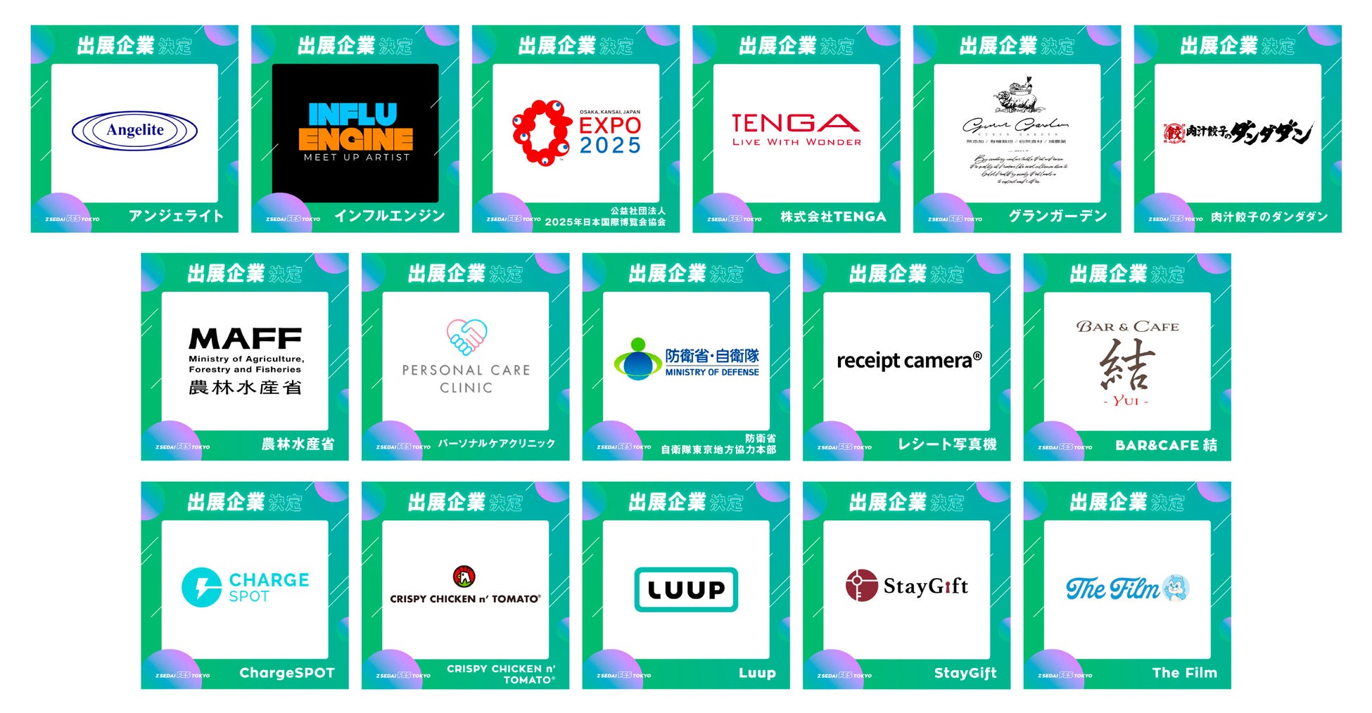 肉汁餃子のダンダダン/Luup/StayGift/BAR&CAFE 結/CRISPY CHICKEN n' TOMATO/Charge SPOT/農林水産省/グランガーデン/レシート写真機/TENGA/Angelite/パーソナルケアクリニック/インフルエンジン/The Film