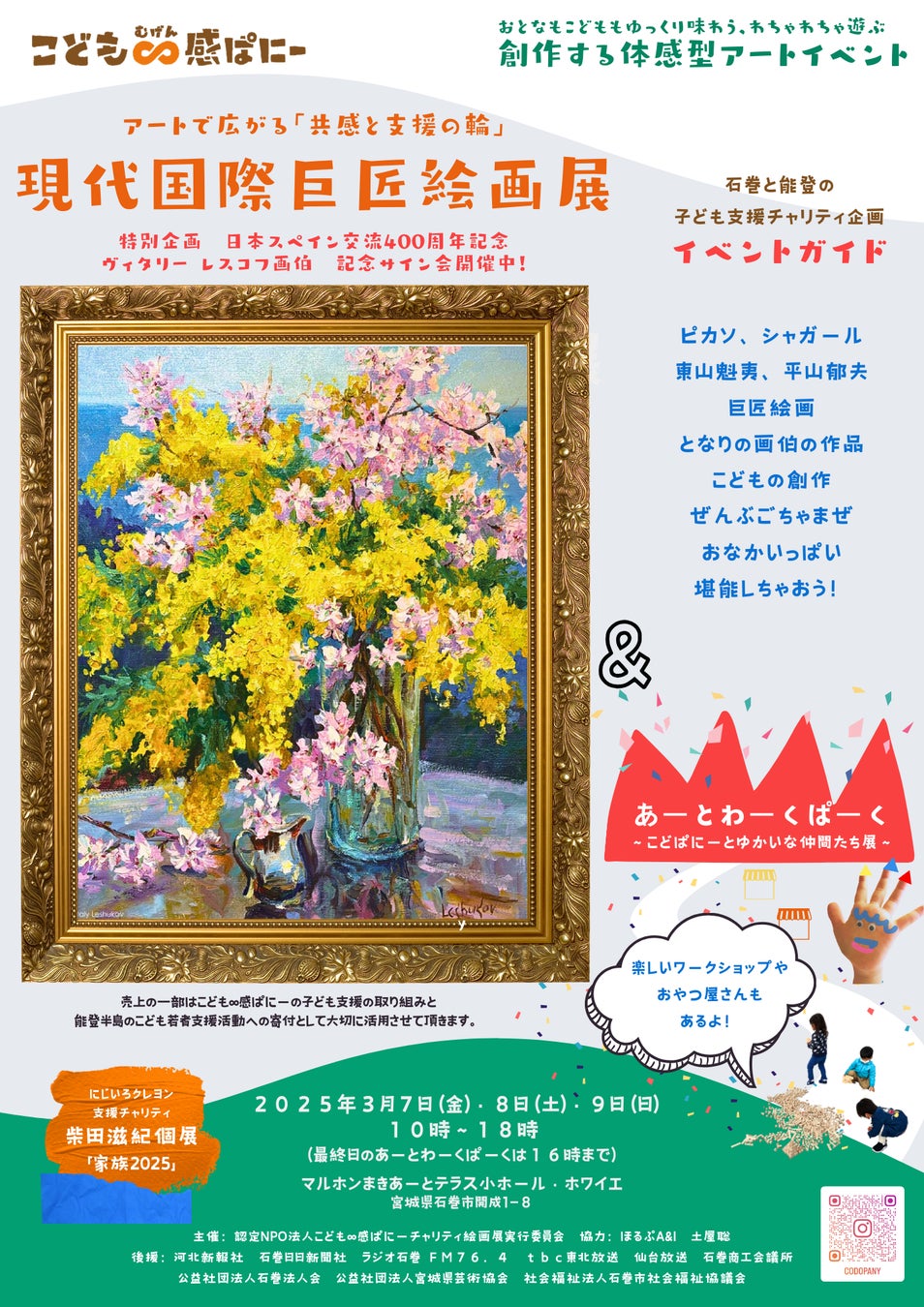 創立12周年を迎える今年、チャリティ企画「現代国際巨匠絵画展」を2025年3月7日(金)~9日(日)にマルホンまきあーとテラス小ホール・ホワイエ(〒986-0032 宮城県石巻市開成1−8)にて開催いたします。