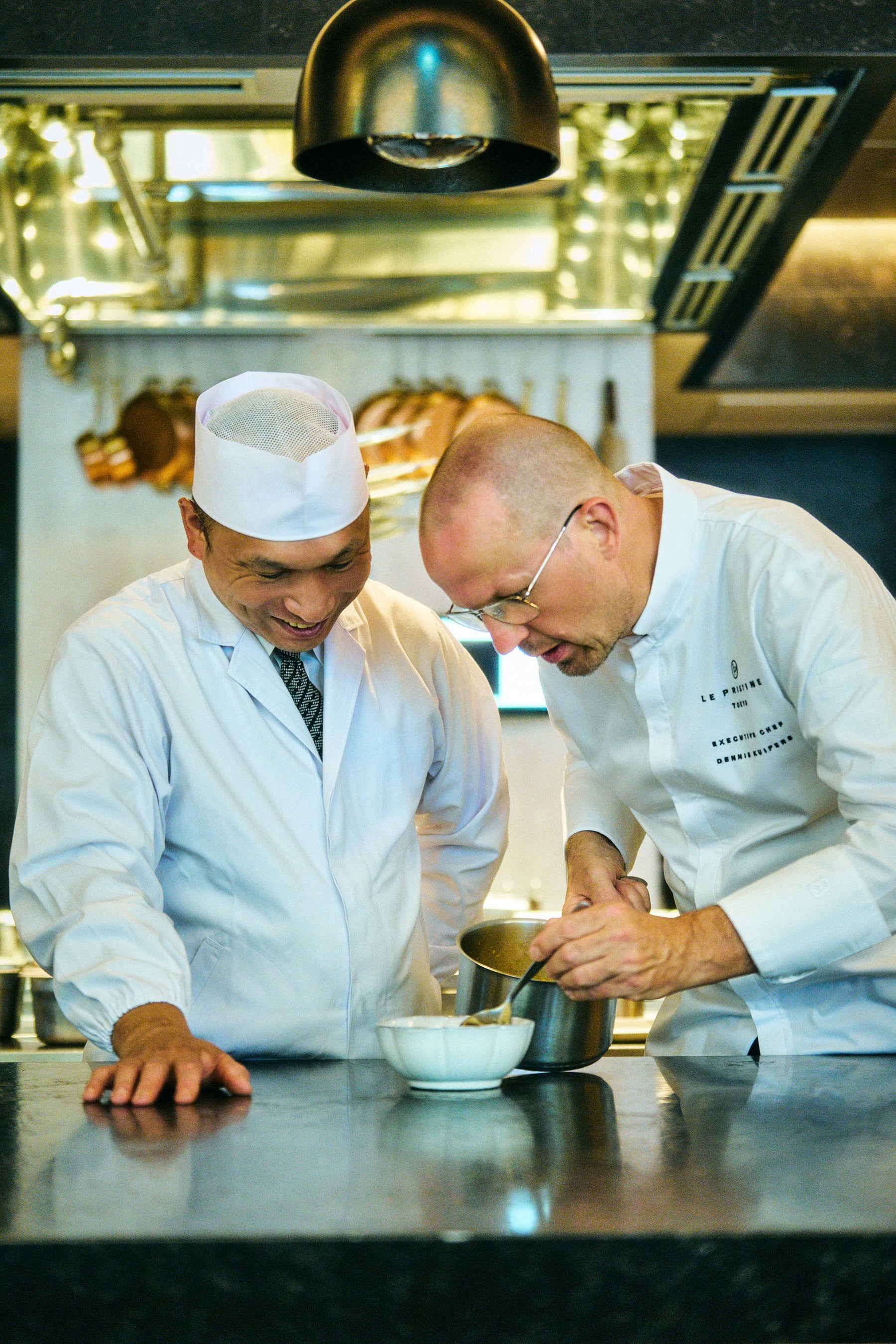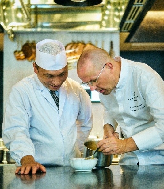 今回、満を持して開催される「ル・プリスティン東京」初のフォーハンズ・コラボレーションには、長年にわたりミシュラン一つ星を獲得し続ける日本料理店「乃木坂 しん」店主・石田 伸二氏をゲストシェフとして迎えます。石田氏は、日本各地の自然が育んだ四季折々の食材を尊重し、その食材同士の“出会い”を大切にしながら、素材本来の持ち味を最大限に引き出す料理を追求してきました。和と洋――異なるジャンルでありながら、素材への深い敬意という共通の哲学を持つ両シェフは強く共鳴し合い、互いの感性が交差することで、唯一無二のメニューが誕生しました。異なるアプローチが奇跡のように調和し、料理は“食”の枠を超えた芸術へと昇華されます。