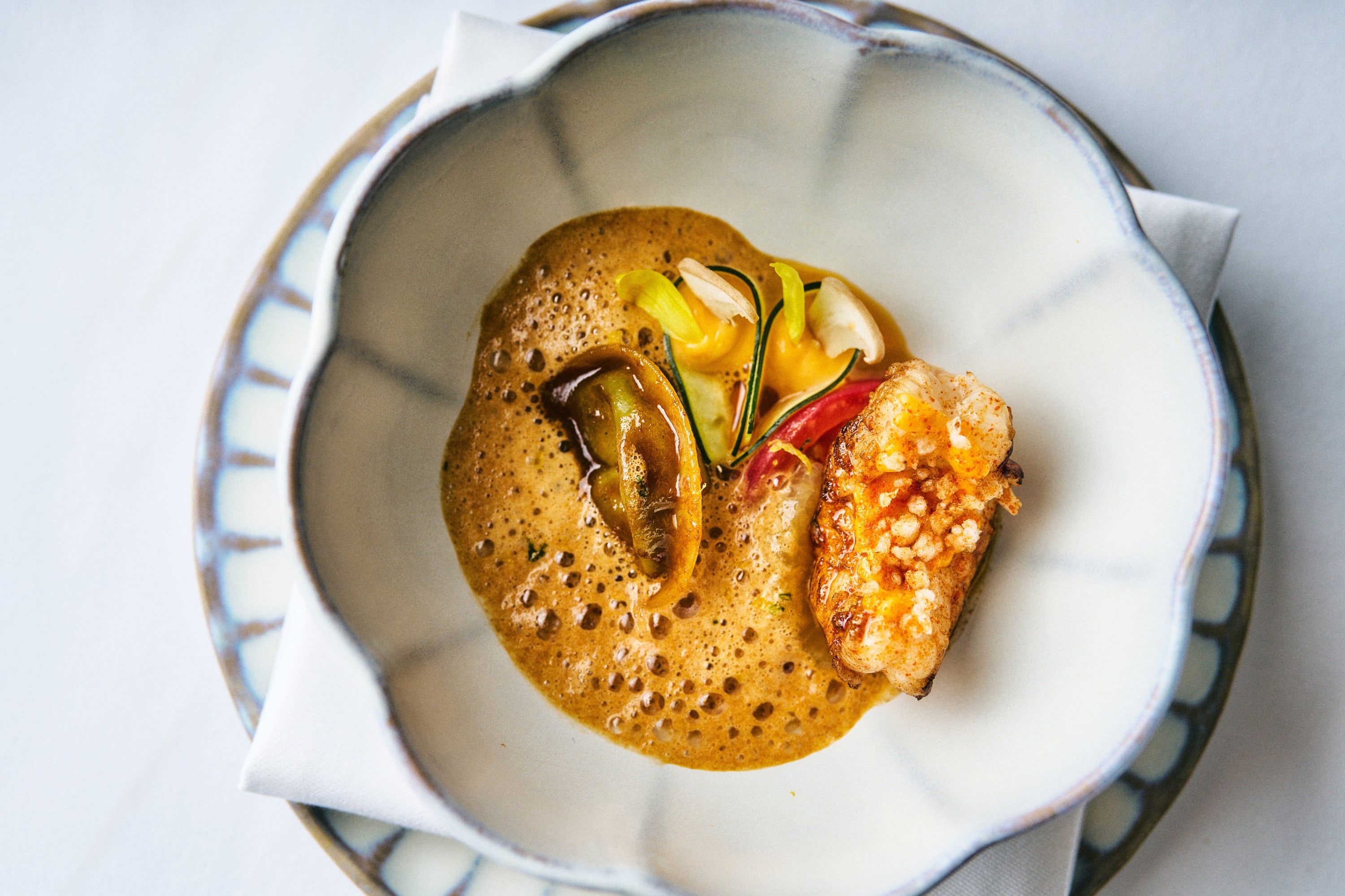 ◆手長海老 ペスト トルテリーニ エリンギ 高知県産トマト 日向夏 そばの実(ル・プリスティン東京)