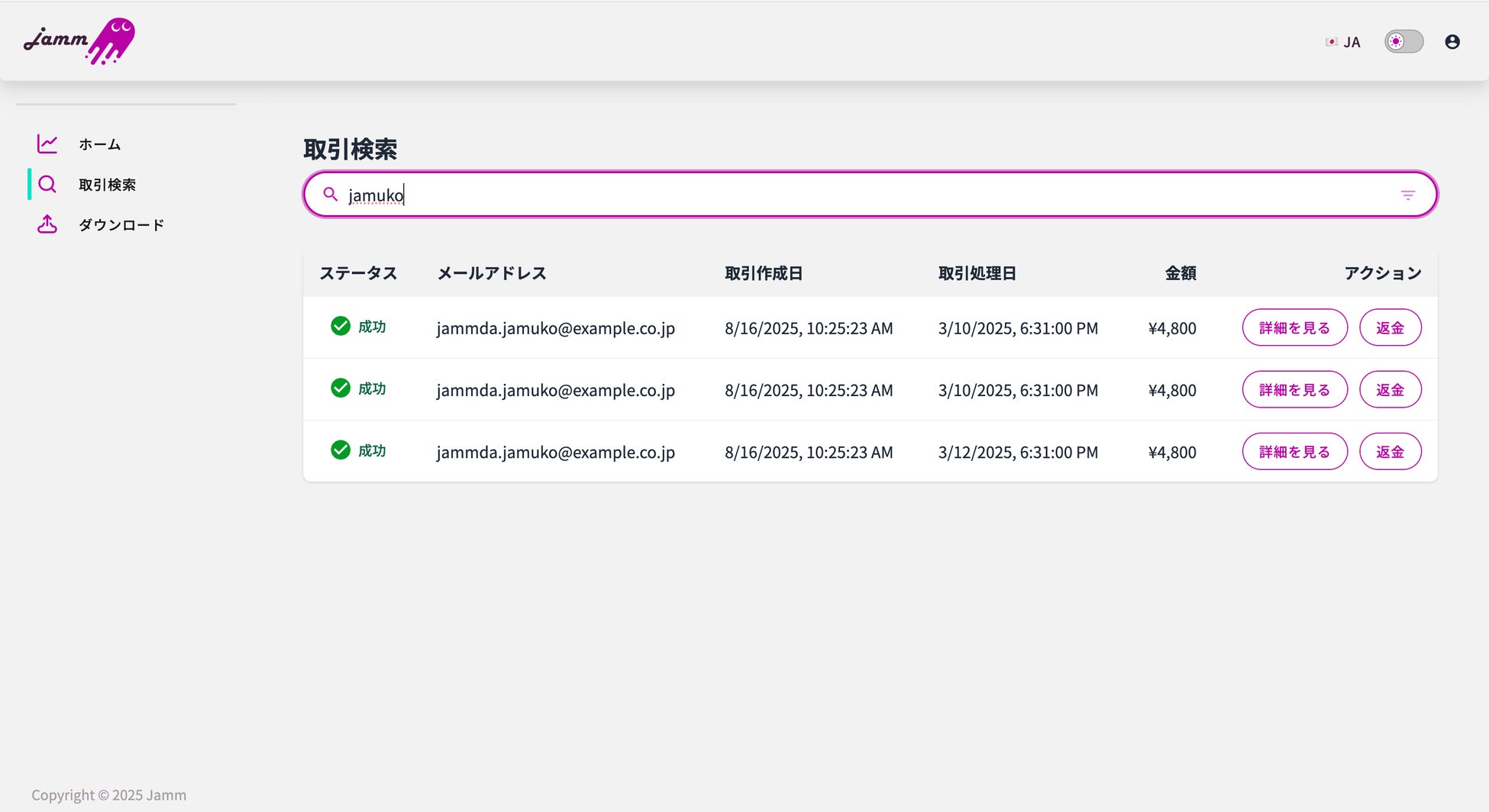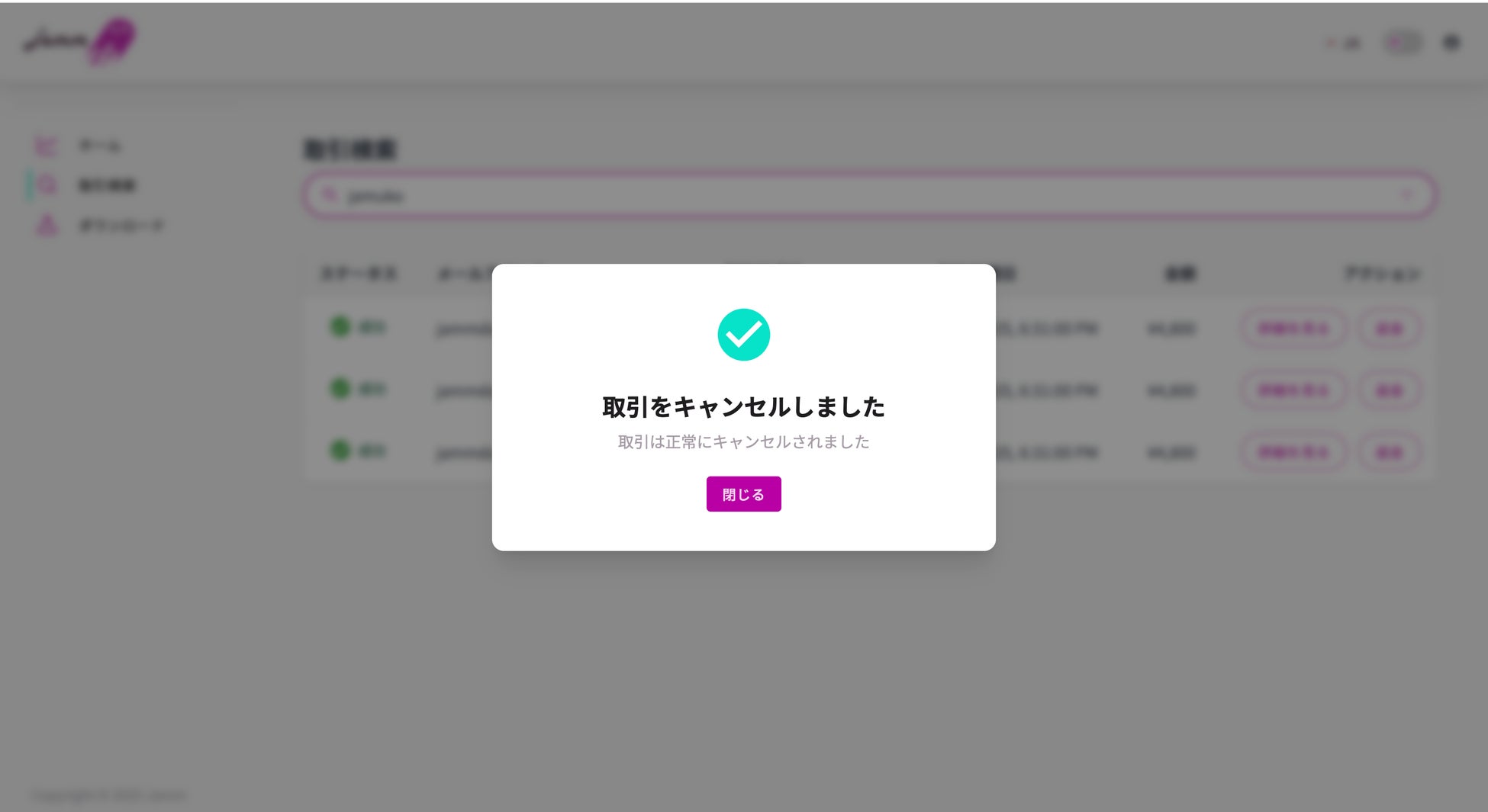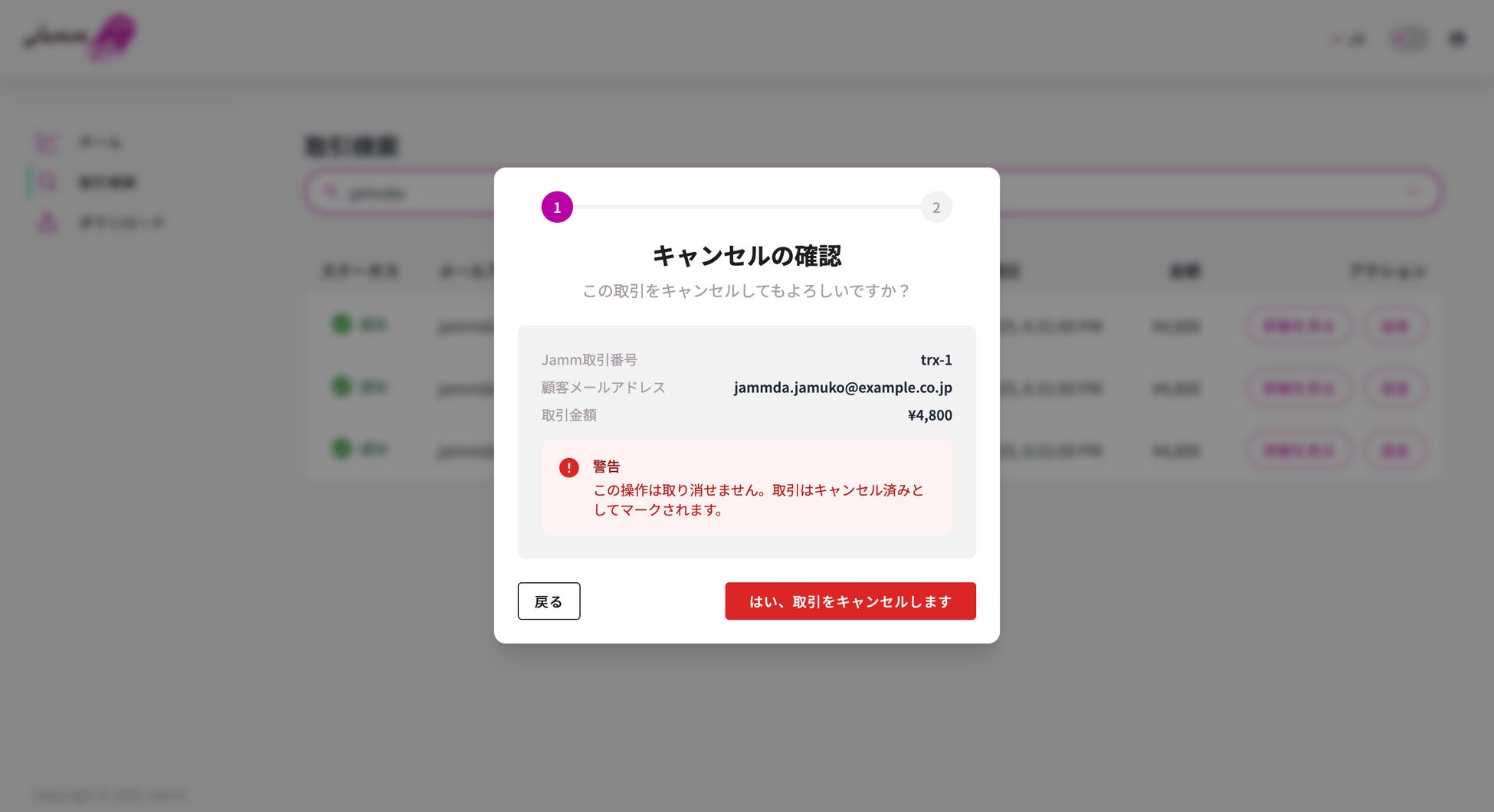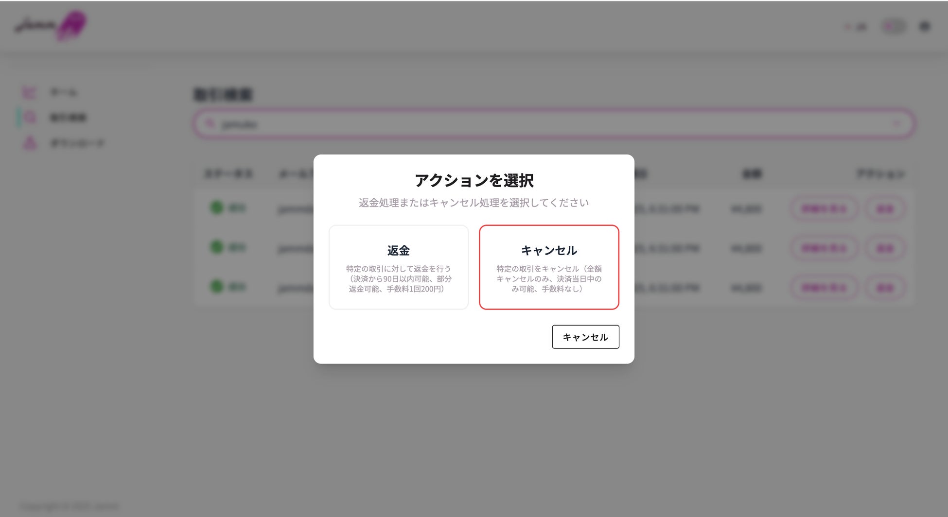本キャンセル機能は、Jammをご利用の加盟店がJammの加盟店用ダッシュボードよりご利用いただけます。