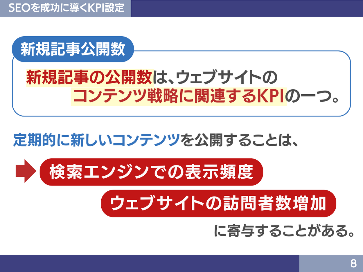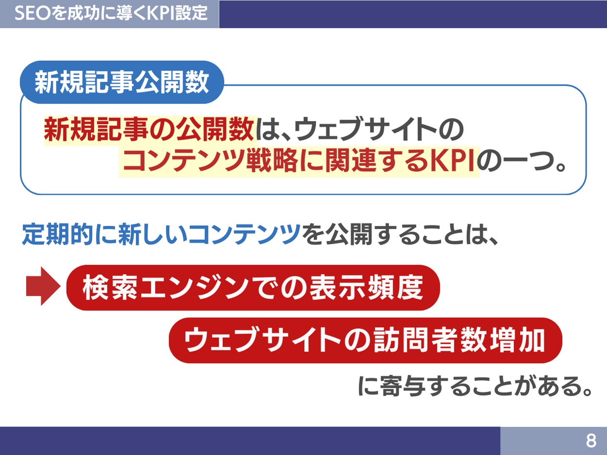 また、SEOのKPI設定の重要性についても改めて紹介しています。