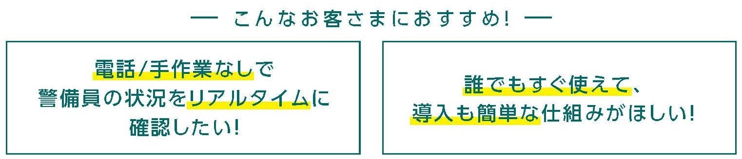 本システムは、介護、建設業界からも活用したいとの要望の声が増えており、警備業界で好評をいただいている利便性が、介護や建設業界の課題解決にも役立っていくものと期待されています。