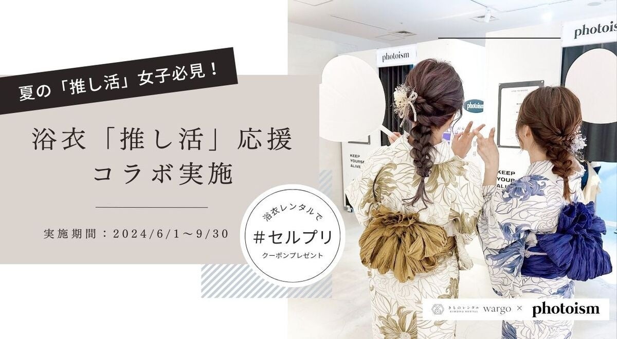 「日本の観光をリードし、文化を次世代につなぐ」というミッション・ビジョン実現のため、観光・インバウンド領域で多様なサービスを展開している株式会社羅針盤(本社:東京都中央区、代表取締役:佐々木文人)が全国に7店舗運営するきものレンタル wargoと、韓国発セルフ写真館がコンセプトのプリント写真(#セルプリ)を運営する『Photoism Japan』が夏の浴衣レンタル期間限定で「推し活」応援コラボを実施します。