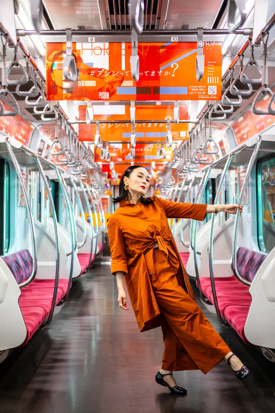 7月3日(木)から東急東横線、7月5日(土)から東急田園都市線の各1編成、そして翌週7月7日(月)からは両線すべての女性専用車両(計94車両)にて、PUSHIMによる車内広告ジャックキャンペーンがスタート。6月20日に配信されたばかりのEP『HOLD ON!』のキーカラーである“オレンジ”に染められた車内は、まるで一両丸ごとが彼女のメッセージを届けるステージのようだ。キャンペーンは約1ヶ月間にわたり実施され、通勤・通学の車内を非日常空間へと変貌させる。