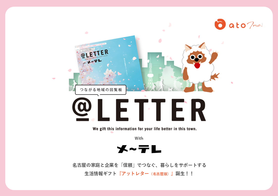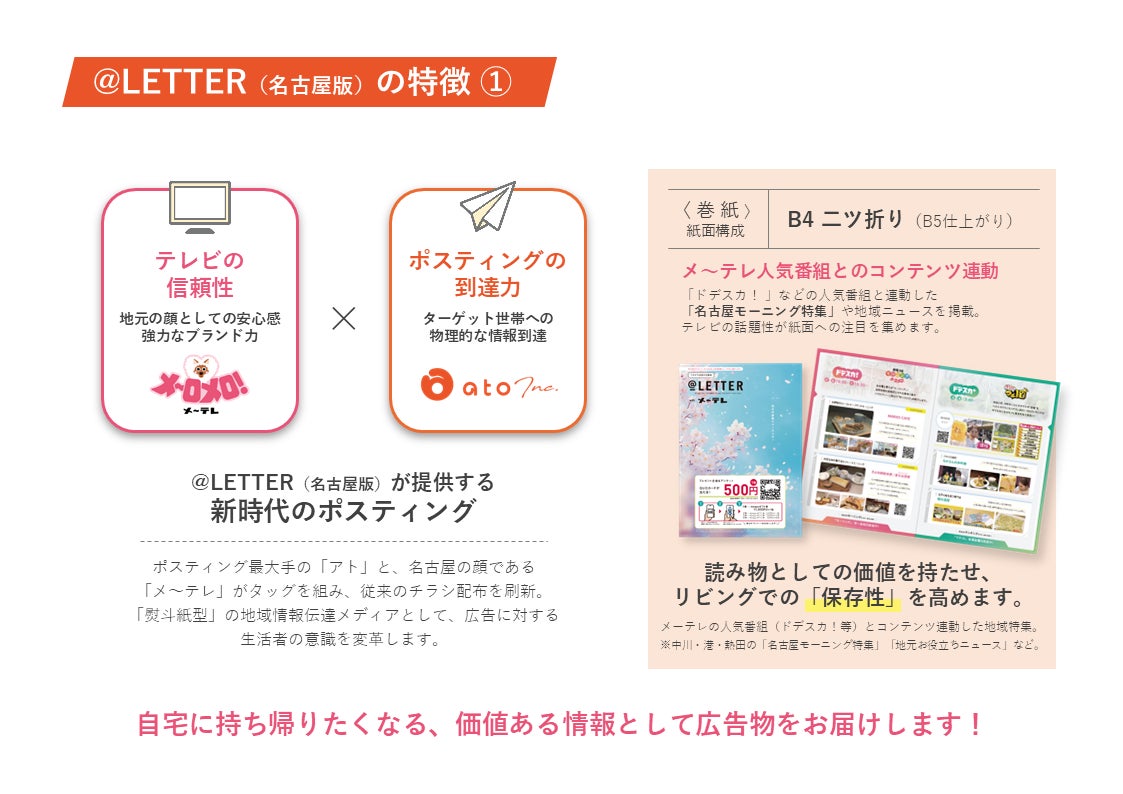 ポスティング最大手「株式会社アト」× 東海三県で放送事業を行う「メ~テレ」がタッグ名古屋エリア特化のポスティング新媒体「@LETTER with メ~テレ」3月30日(月)配布開始!