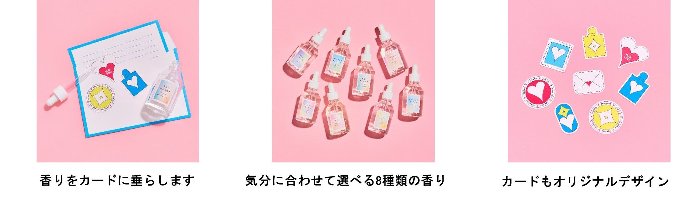 8つの香りから好きな香りを選んでカードに垂らし、手紙に同封することができます。