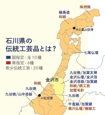 石川県は江戸時代に花開いた加賀百万石文化が今なお息づく文化県です。国指定の伝統的工芸品を10品目、県指定などその他の工芸品を26品目有し、輪島塗、山中漆器、九谷焼、加賀友禅等、多くの伝統工芸の技が受け継がれています。(石川の伝統工芸:https://www.icnet.or.jp/dentou/ )