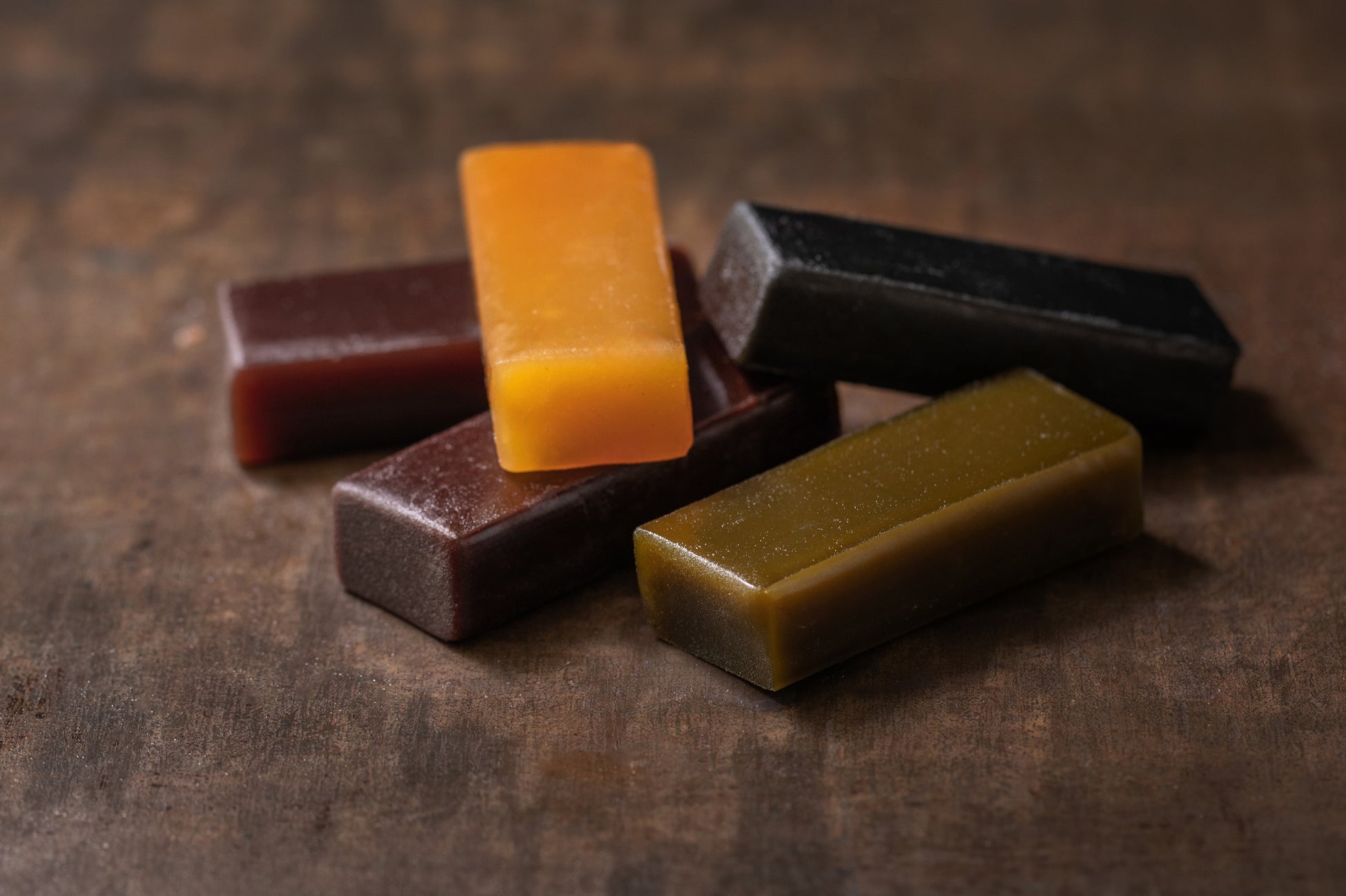 北海道産小豆、鹿児島県産粗糖、岐阜県山岡町の寒天を使った煉羊羹『あんこ』、埼玉県三芳町産「富の川越いも」の自然な風味や甘みを生かした『おいも』、有機カカオと小豆の濃厚な香りとコクが楽しめる『カカオ』、京都宇治の有機抹茶を練り込んだ『抹茶』、有機黒ごまペーストをたっぷりと練りこんだ『黒ごま』。