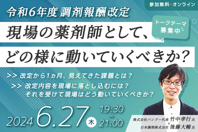 【無料セミナー】薬局経営者・薬剤師必見!令和6年度調剤報酬改定「現場の薬剤師として、どの様に動いていくべきか?」