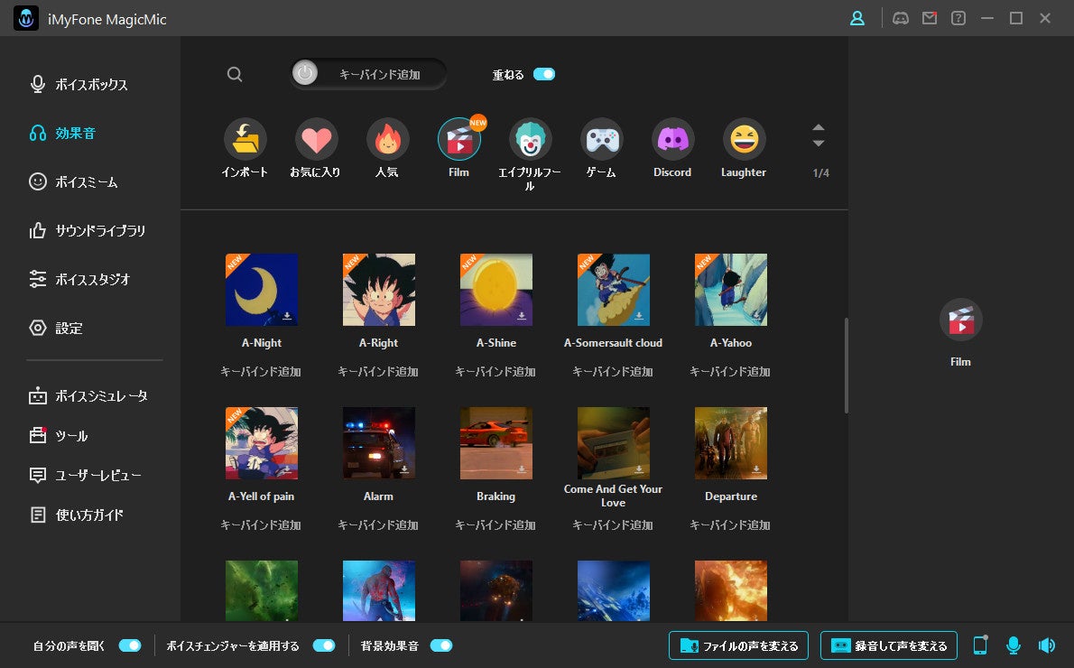 アニメや映画の名セリフやゲームのボイスチャットでよく使われる言葉、感情表現などの効果音は数十個を追加し、今は総計500個以上の効果音が再生できます。ライブ配信や通話での活用を想定しています。