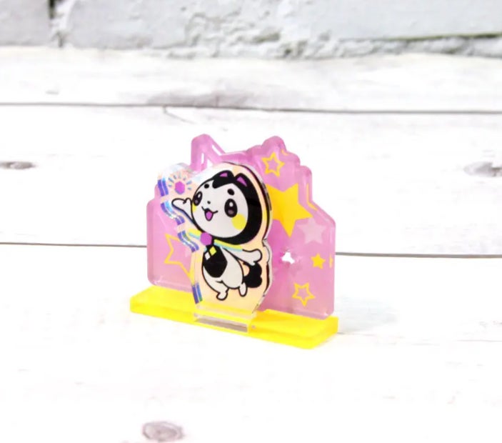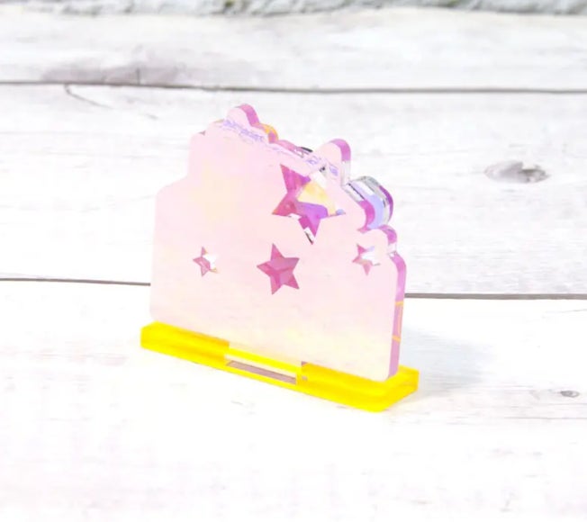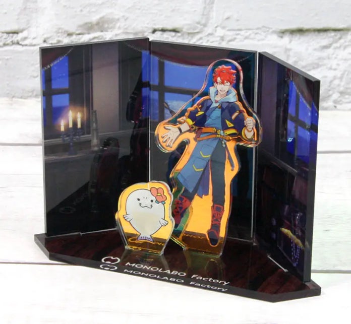 光の当たり具合で立体感を演出するホログラム加工のアクリルスタンドに、上品なフレームが加わり、さらに魅力的に進化しました。フレームが付くことでデザインがより引き立ち、飾る楽しさや特別感がアップしています。