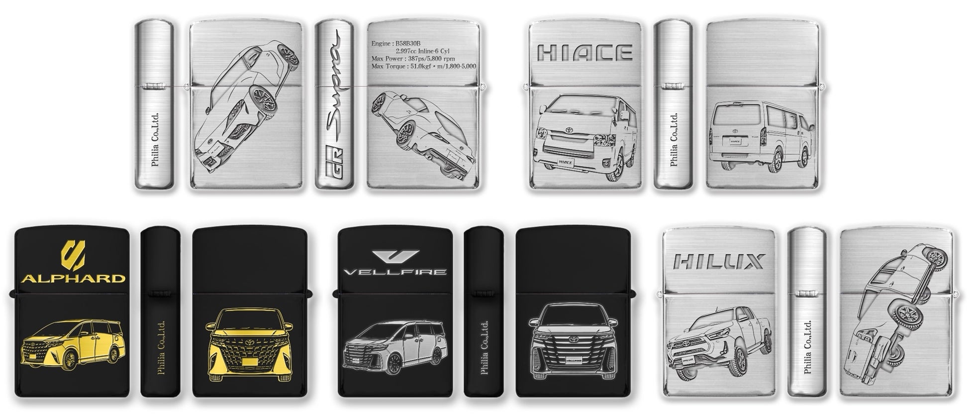 2024年10月10日、有限会社フィリア(本社:東京都北区赤羽西、代表取締役:最上 豊)は、トヨタ自動車株式会社より許諾された5車種のデザインのトヨタ自動車Zippo第2弾を発表しました。この第2弾Zippoは既に発売中の第1弾Zippo(4種)と合わせてフィリアオンライン[https://philia-online.com/item-list?categoryId=85790]にて購入可能です。(新商品の5種は予約受付中です)