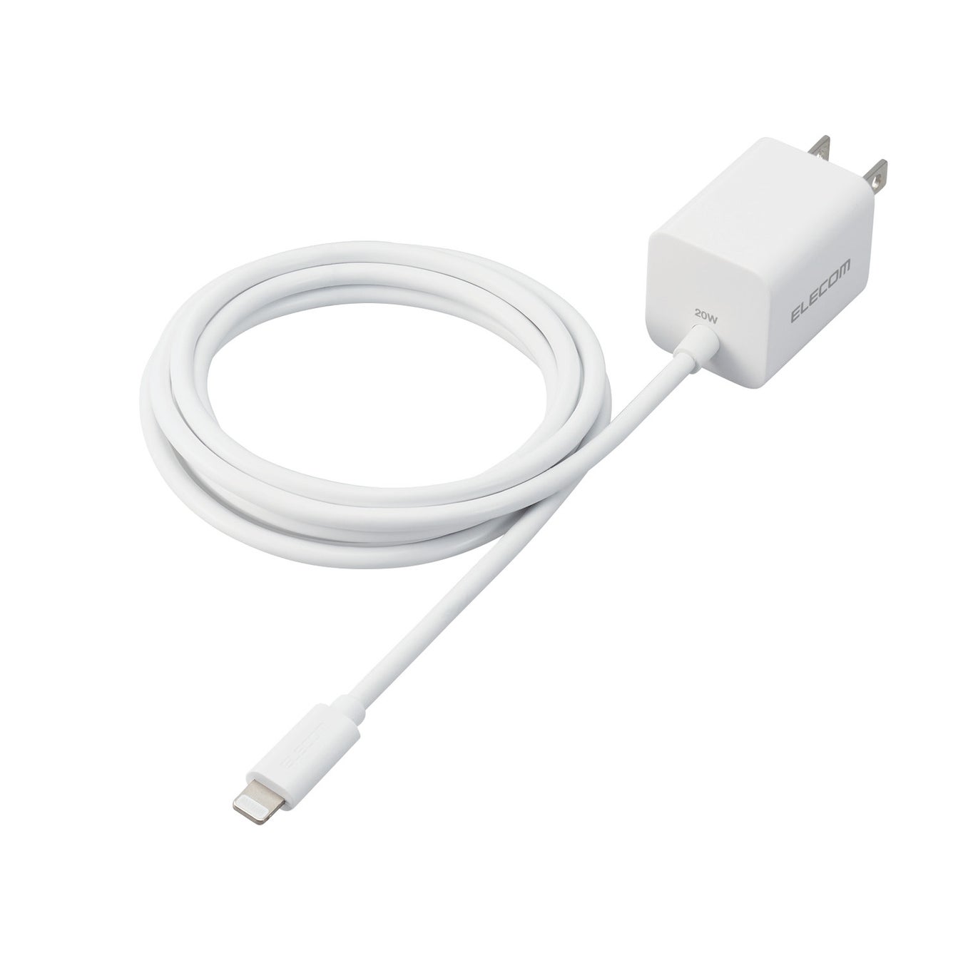 ・USB Power Delivery 20W AC充電器(Lightningケーブル一体型) MPA-ACLP05WH(エレコム)