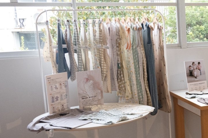 会場では、商品開発のきっかけとなったエピソードの紹介や、秋冬こそ注意が必要な乳幼児突然死症候群(SIDS)や窒息リスク軽減に繋がるスワドル・スリーパー類も丁寧にご紹介。Konnyの独自のワークスタイルの紹介も行いました。大人気の「コニースタイ」を一面に展示したタペストリーがフォトスポットとして注目を集めました。