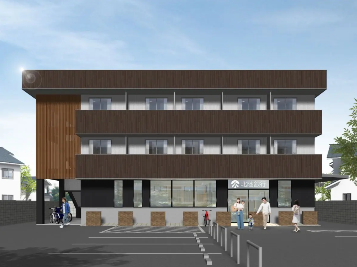 1階には北陸銀行勝山支店が入り、 2・3階には学生向けの部屋が10室整備される予定です。
