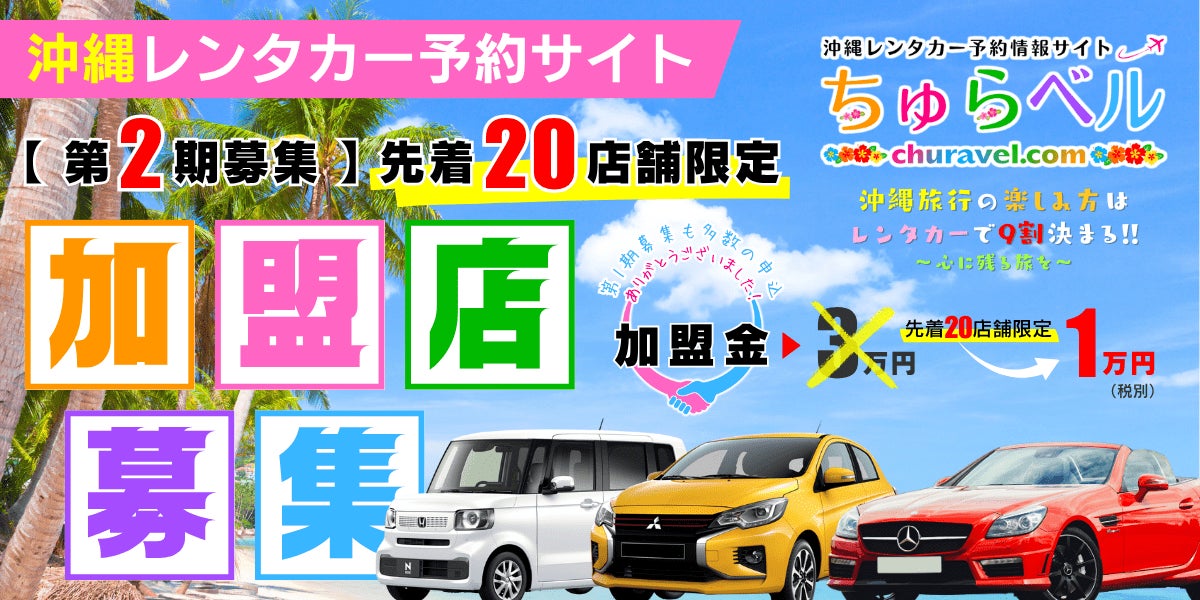 沖縄レンタカー予約サイト「ちゅらベル」加盟店の第2期募集を開始 先着20店舗限定
