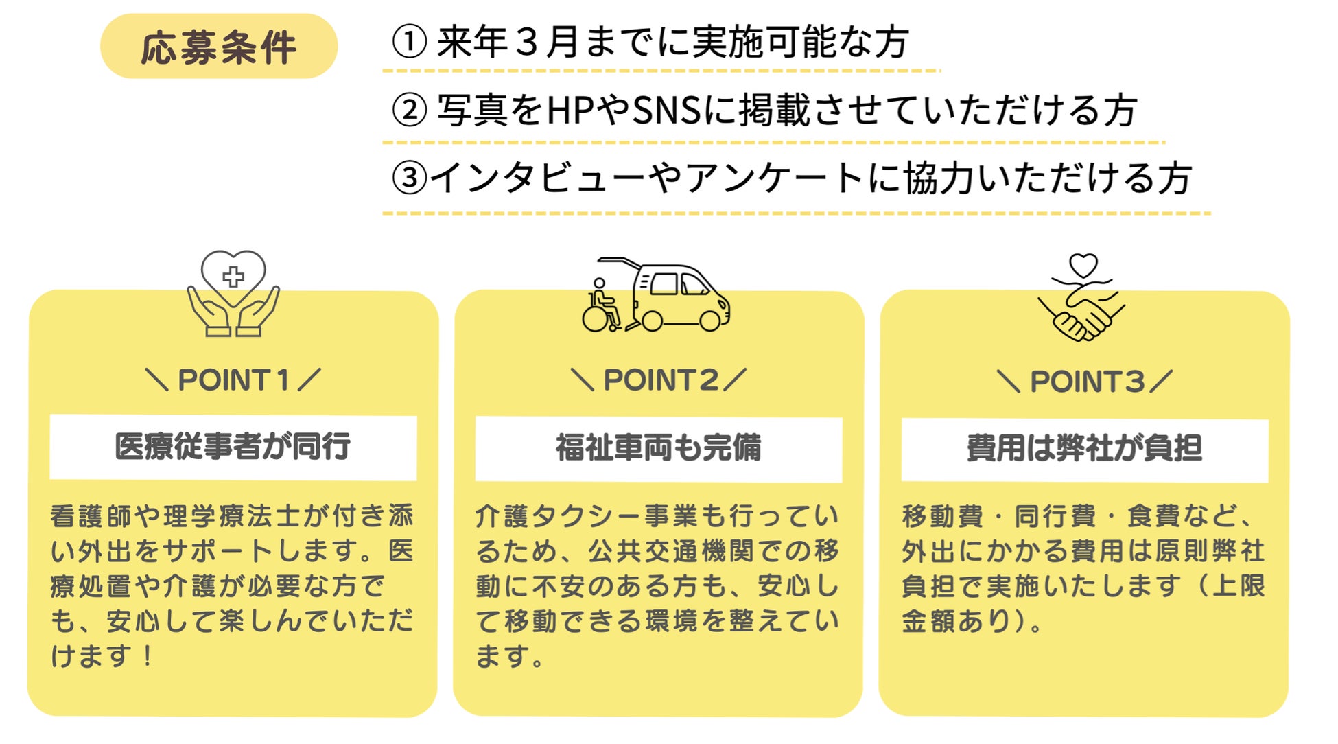 参加条件 : 病気やケガ、障害などで外出に不安のある方