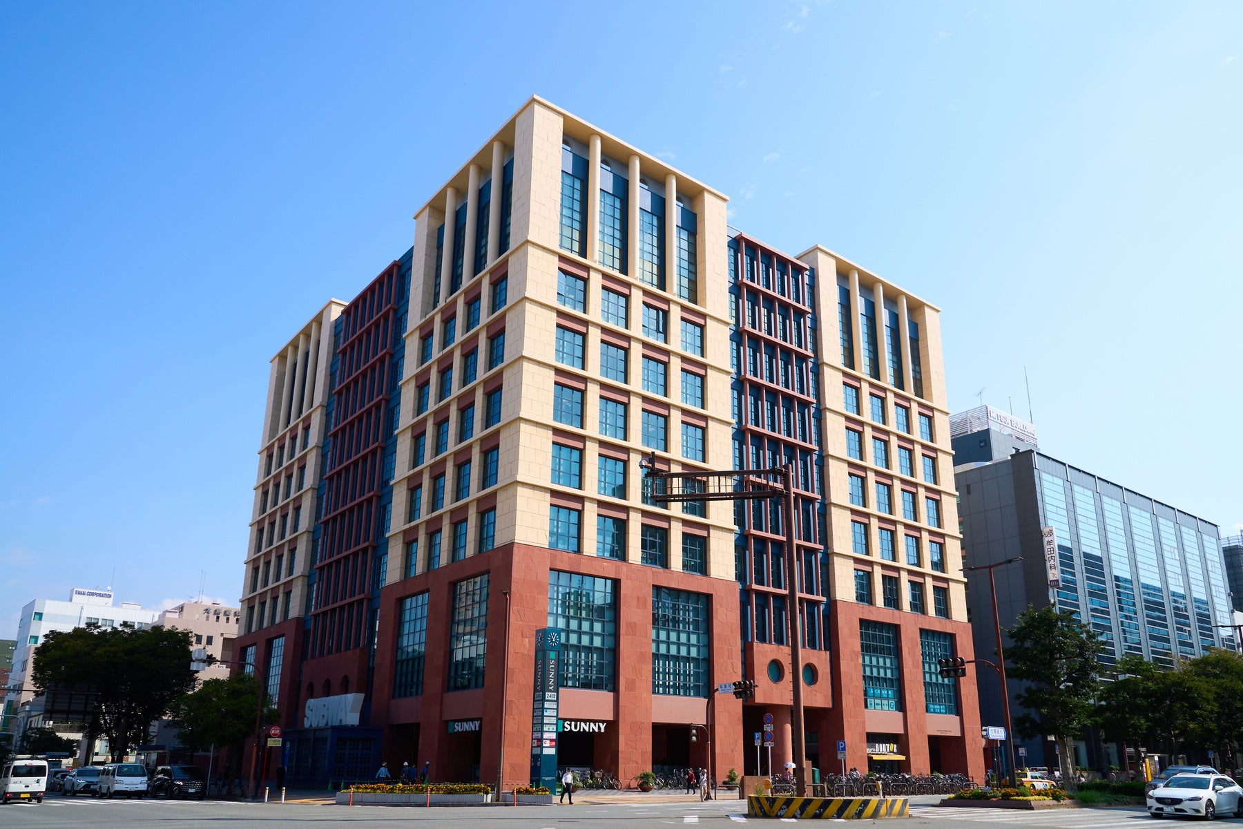 新たな福岡支社がある呉服町ビジネスセンターは、ポストモダンを代表する建築家の一人であるマイケル・グレイブスが設計したオフィスビルです。福岡市地下鉄・呉服町駅直結で、天神や博多からもアクセス良好な立地となります。