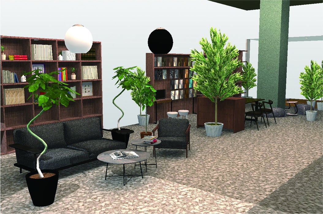 数多くの書籍や観葉植物、建材や壁紙などのサンプルも常設していますので、インテリアのイメージを参考にしたり、部屋に合う観葉植物を購入することも可能です。