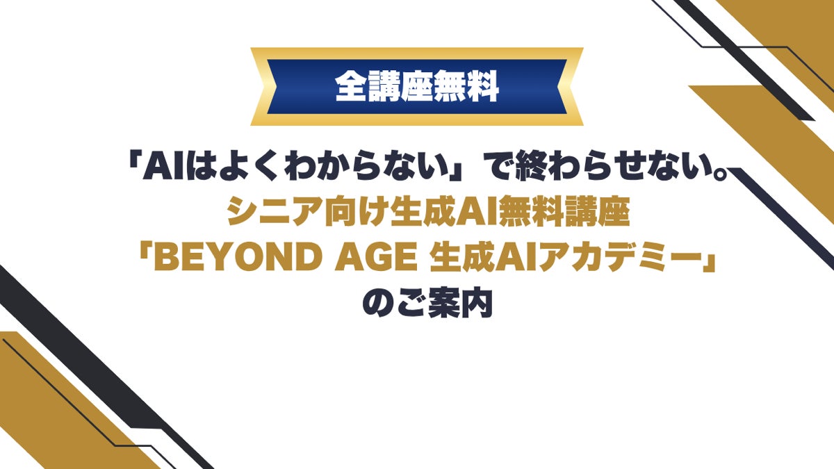こうした背景から、BEYOND AGEでは「AIは難しそう」「自分にはまだ早い」と感じている方でも安心して学べる、シニア向けの無料講座を展開しています。