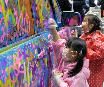 10時開場後からスペシャルステージ 舛田玲香のアーティストトークまでに大型キャンバスに作品を描き下ろし。