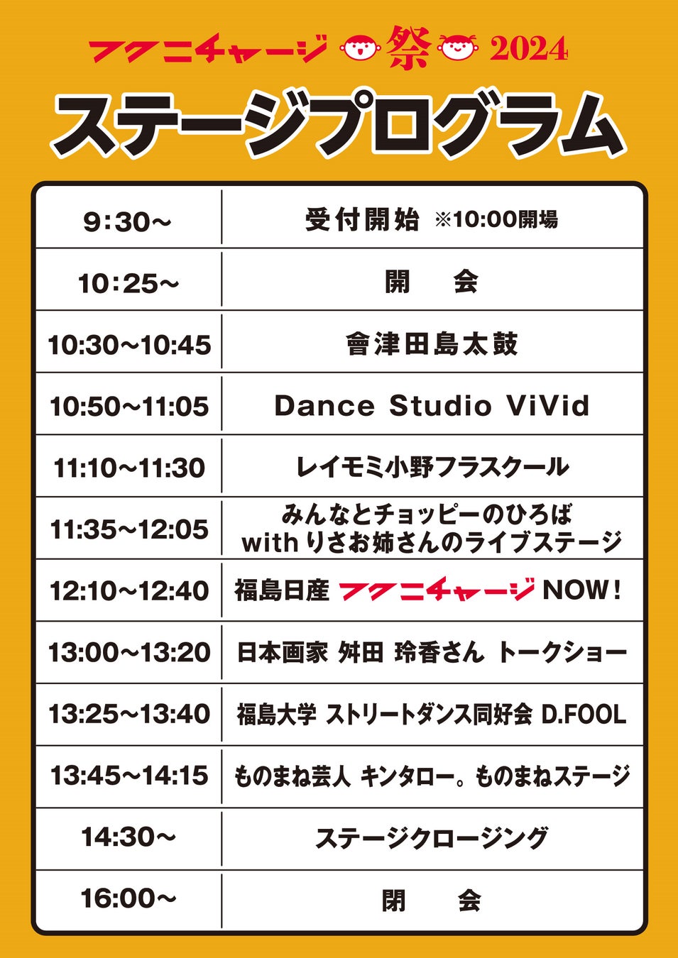 フクニチャージ祭 ステージプログラム&ワークショップ タイムスケジュール