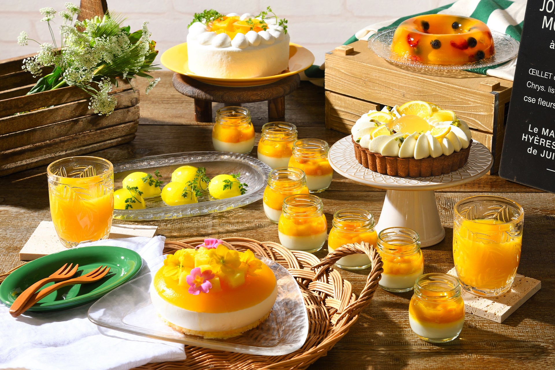 オレンジショートケーキ/タルトシトロン/パイナップルのレアチーズケーキ/パッションフルーツのゼリー/レモンムース/チョコレートファウンテン