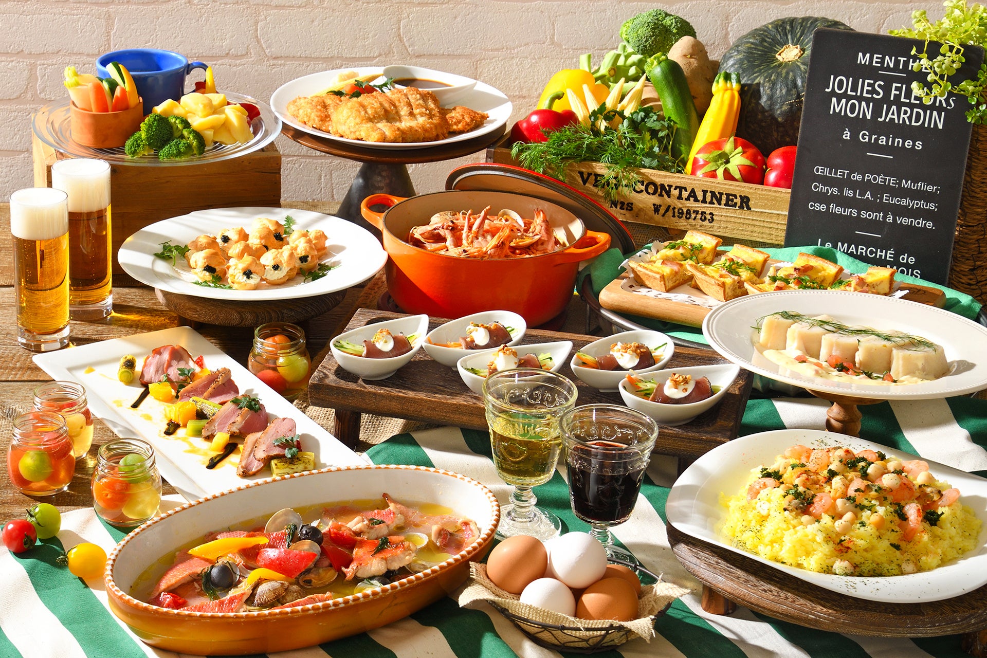 ホテルシェフが腕を振るう味わいを、選りすぐりの45種のドリンクとともに、食べ放題、飲み放題でお楽しみいただけます。