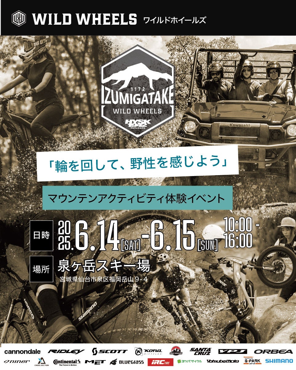 最新マウンテンアクティビティを提案するオフロードサイクル&モビリティ体験試乗会「WILD WHEELS in 泉ヶ岳スキー場 2025」が6/14(土)・15(日)宮城県仙台市泉ヶ岳スキー場にて開催!