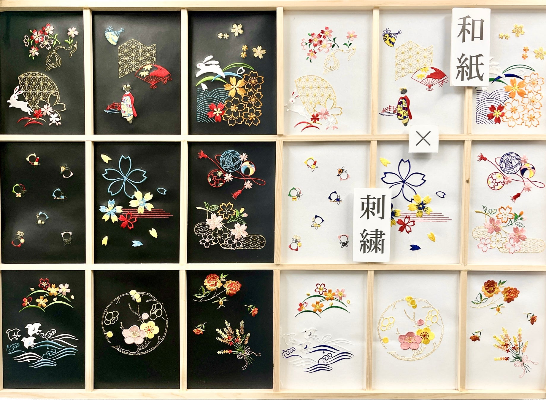 和紙の持つ繊細な風合いに刺繍の立体感を融合させた、新しい和の表現です。