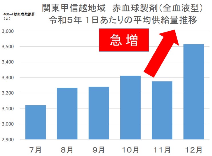 関東甲信越地域において医療機関への赤血球製剤の供給量が急増!