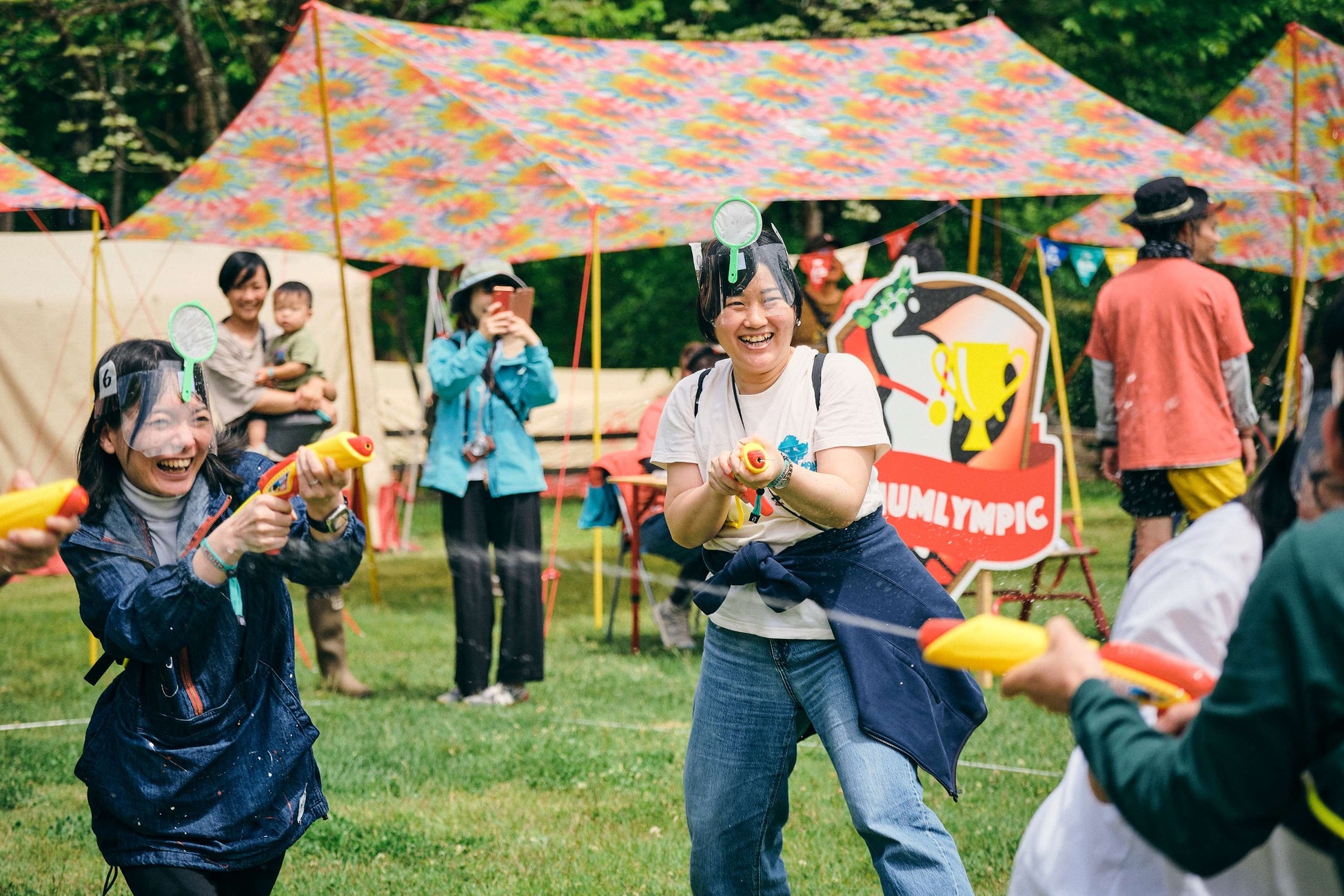 みんなで運動や、どこか懐かしいアメリカンな縁日でゲームをしてあそぶのも良し。ぼーっと軽井沢の広大な自然を楽しむのも良し。食べて、あそんで、気づいたらあっという間にみんな仲良し。