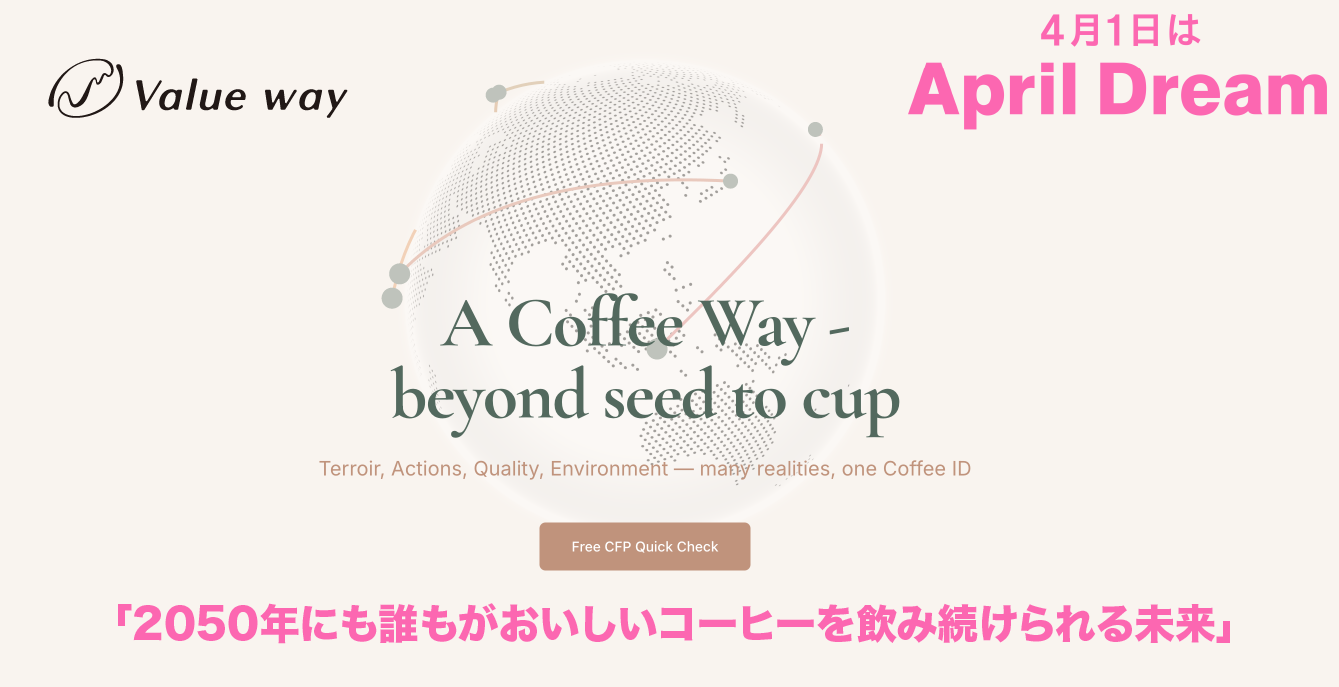 April Dreamで「2050年にも誰もがおいしいコーヒーを飲み続けられる未来」の実現に向け、コーヒー価値可視化基盤のティザーサイトを公開、β版無料招待