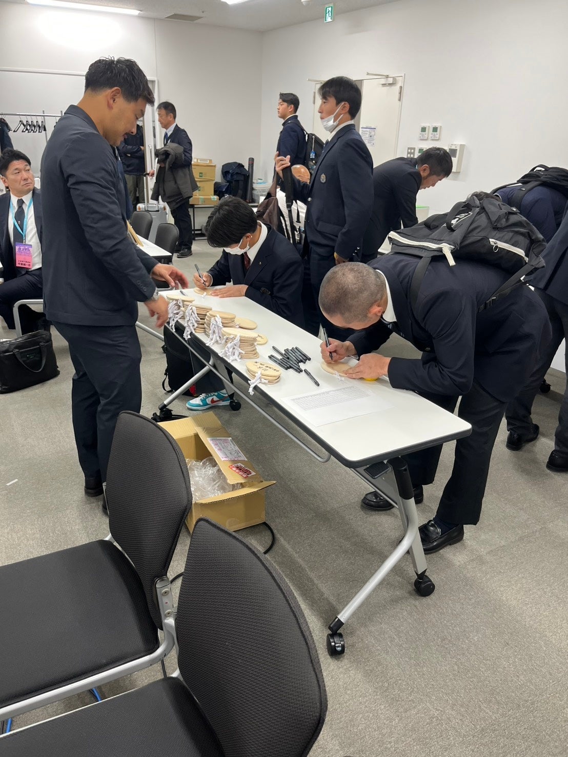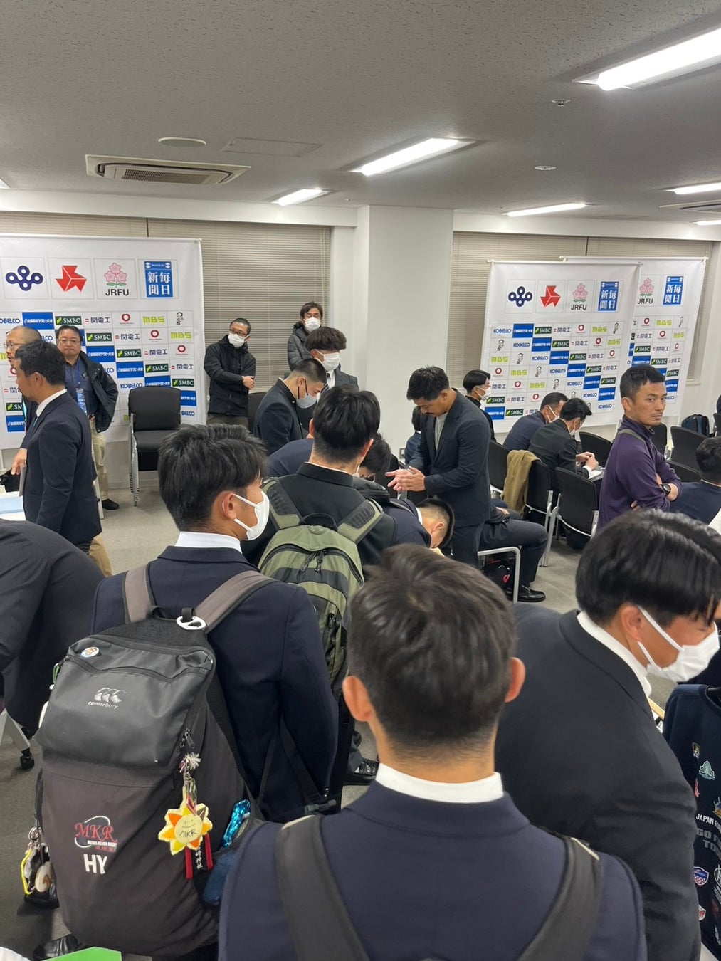12月6日に行われた大会抽選会では、社会人最高峰リーグ「リーグワン」に所属する横浜キヤノンイーグルスの天野寿紀選手(スクラムハーフ)が、出場校の代表選手一人ひとりに絵馬を手渡し、それぞれの思いが綴られた絵馬を回収してくださいました。