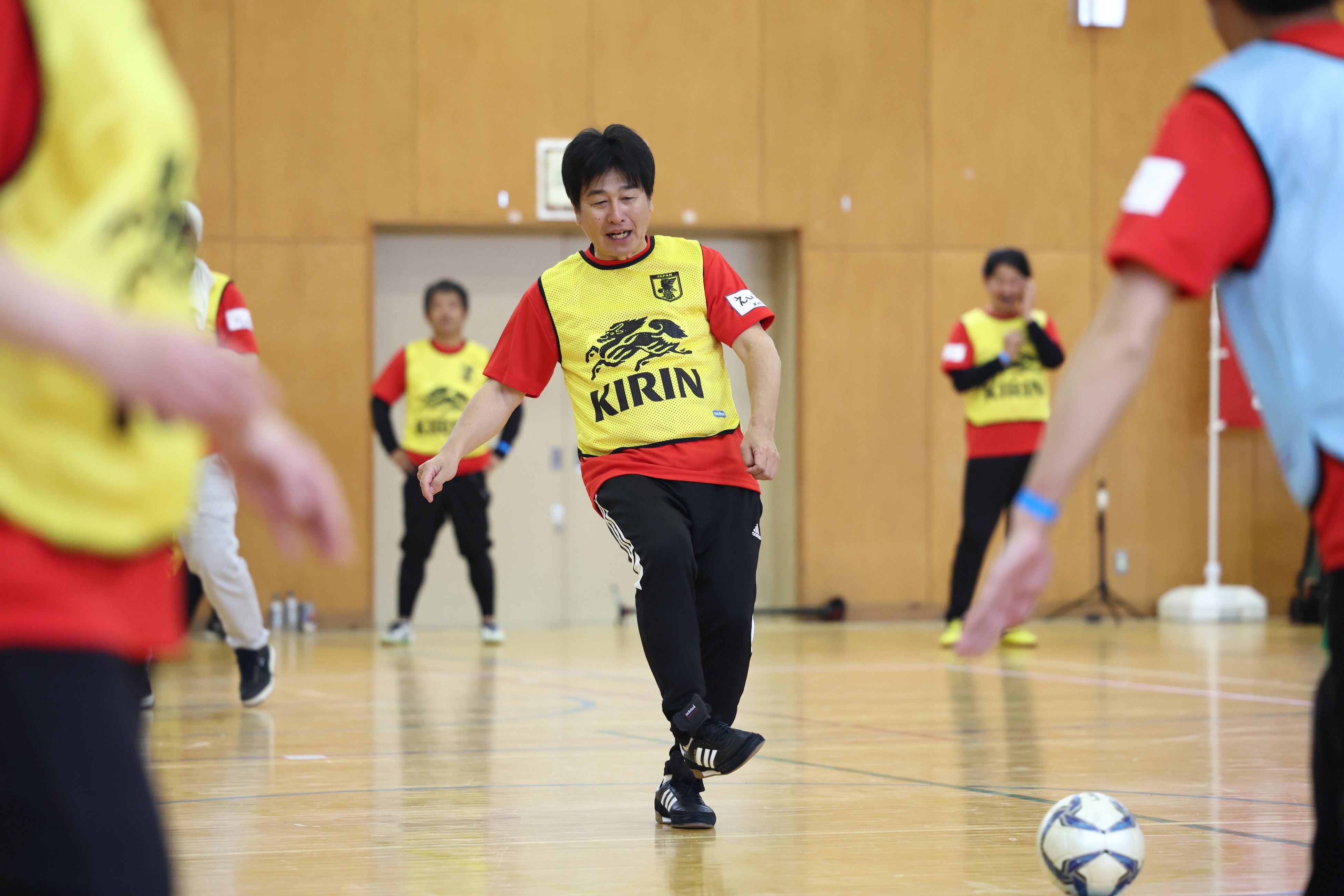 キリンビールは、長い間サッカー日本代表の応援をさせていただいています。今後も町野選手のゴールパフォーマンスが見れることに期待したいなと思います。一方で、社会課題に向けた取り組みとして、このウォーキングフットボールという年齢、性別、障がいなどの垣根を越えてみんながプレーできる世界に非常に可能性を感じています。JFAさんも推奨しており、そこにキリンもサポートさせていただいて、震災の被害に遭われた方ももちろんですが、日本中の人を笑顔にできる、そんな取り組みにしていきたいなと思っています。