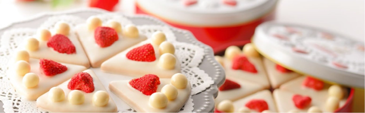 フリーズドライの苺と、ホワイトチョココーティングされたさっくり食感のサブレと、プレーン&苺のシンプルな型抜きサブレの3種の組み合わせです。