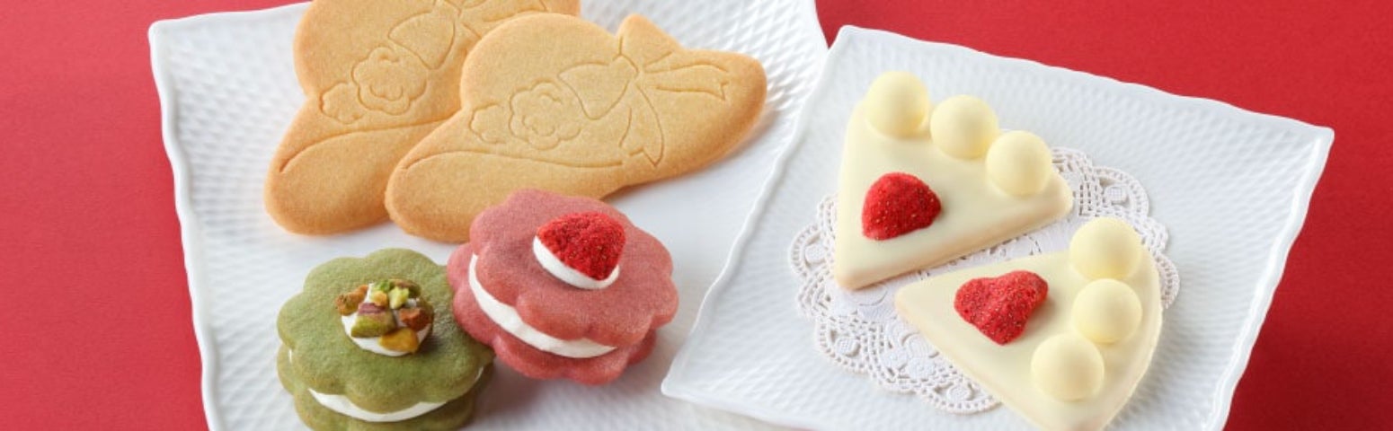 いちごの乗ったケーキサブレに、クリームをサンドしたお花の形をしたサブレ。