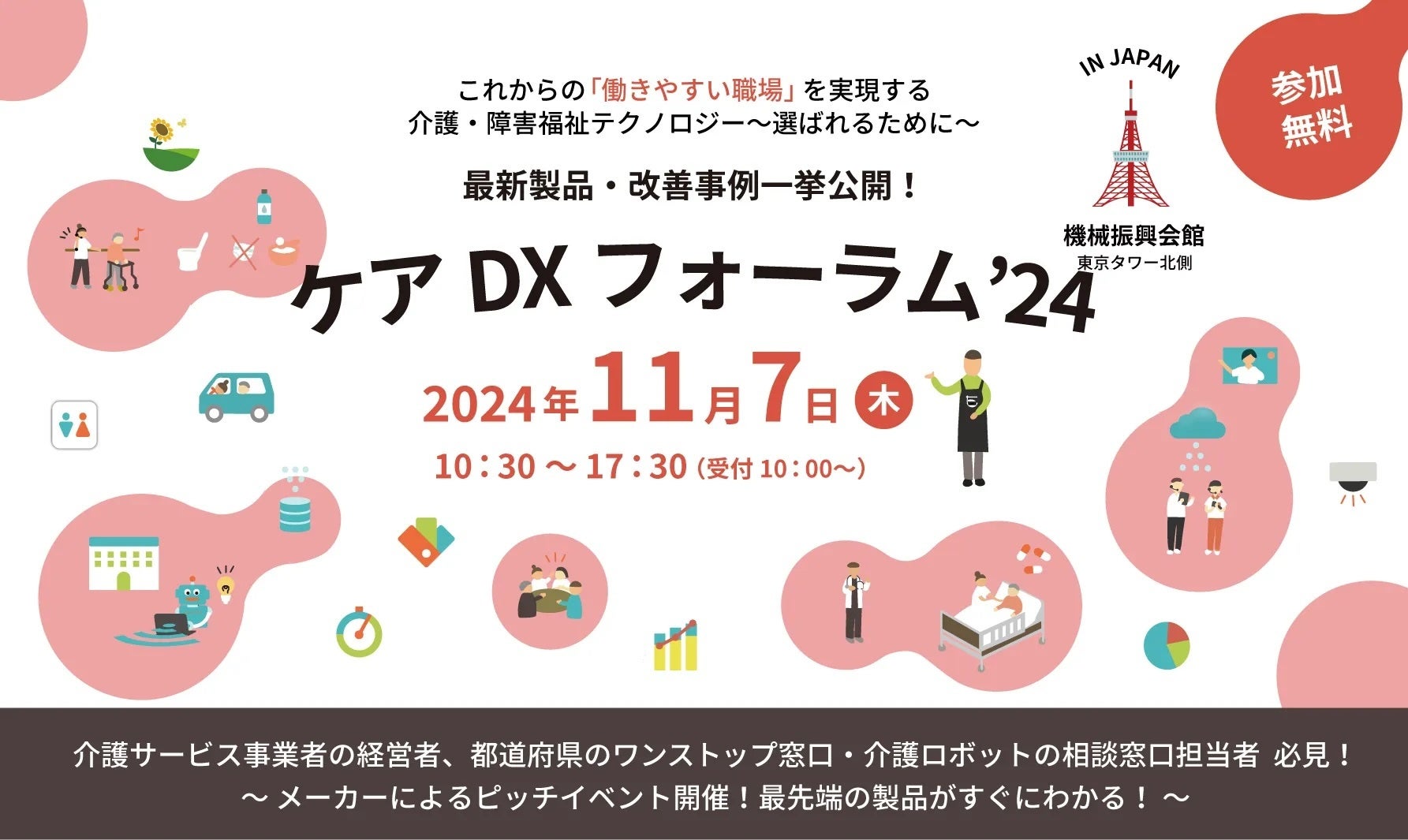 また「ケアDXフォーラム'24」では、これからの『働きやすい職場』を実現する介護・障害福祉テクノロジーとして最新製品・改善事例を一挙に公開します。介護・障害福祉における現場の効率化や業務改善に役立つ最新の製品やサービスが多数展示され、実際にその導入効果を体験することができます。また、業界トップランナーによるセミナーやパネルディスカッションを通じて、DX(デジタルトランスフォーメーション)が介護・障害福祉事業にどのような変革をもたらすのか、処遇改善加算の新要件にどう対応すべきかなど具体的な学びを得られる場となっています。