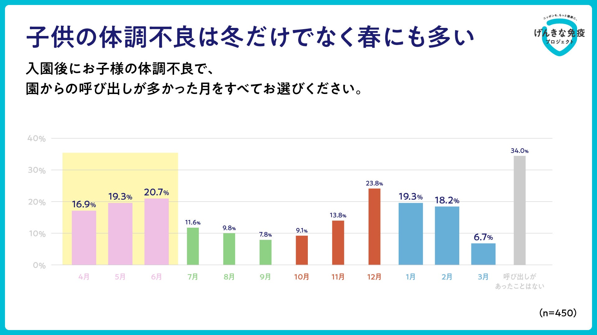 ※2 春から通園を開始する子供たちが、集団生活をはじめて経験し、他者と接する機会が増えることで体調を崩してしまうこと