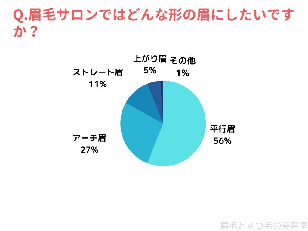【1】眉毛サロンでどんな形の眉がいいか調査したところ「平行眉(56%)」が人気!トレンド感のある眉が過半数を超える支持を得る結果に