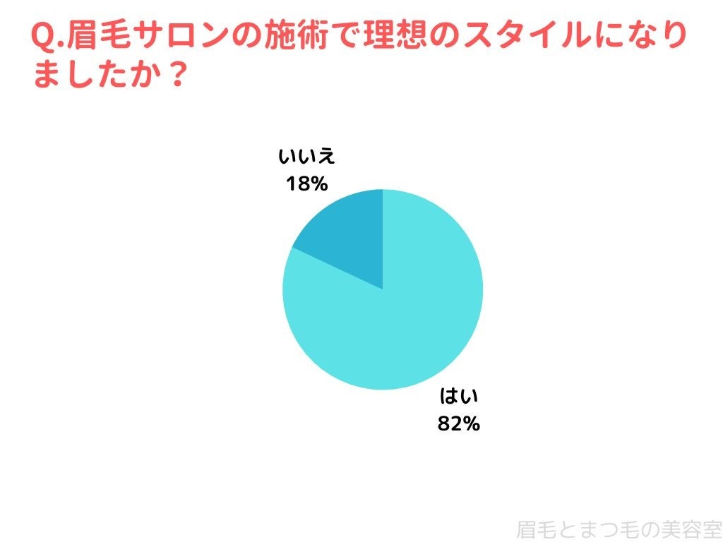 眉毛サロンで理想のスタイルになったかどうかお聞きしたところ「はい(82%)」、「いいえ(18%)」という結果になりました。